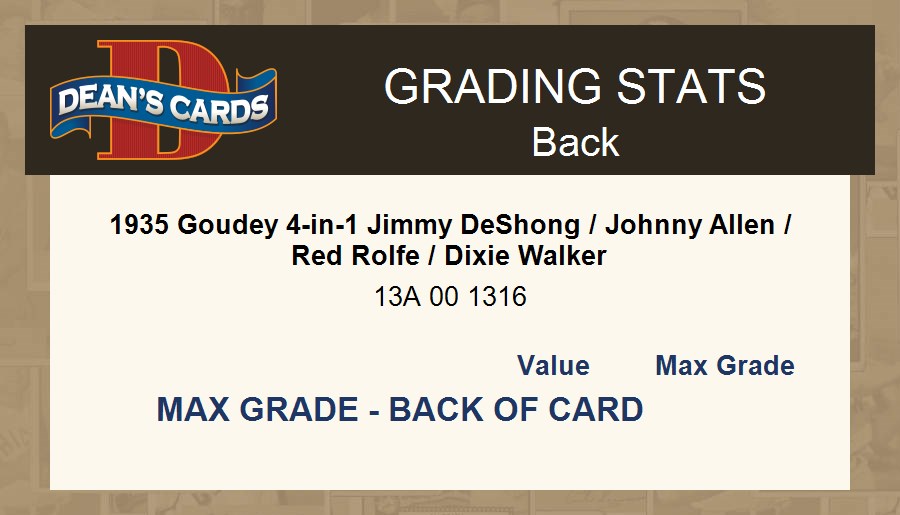 1935 Goudey 4-in-1 Jimmy DeShong / Johnny Allen / Red Rolfe / Dixie Walker