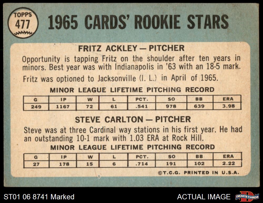 1965 Topps #477 - Steve Carlton / Fritz Ackley Cardinals Rookies 1.5 - FAIR