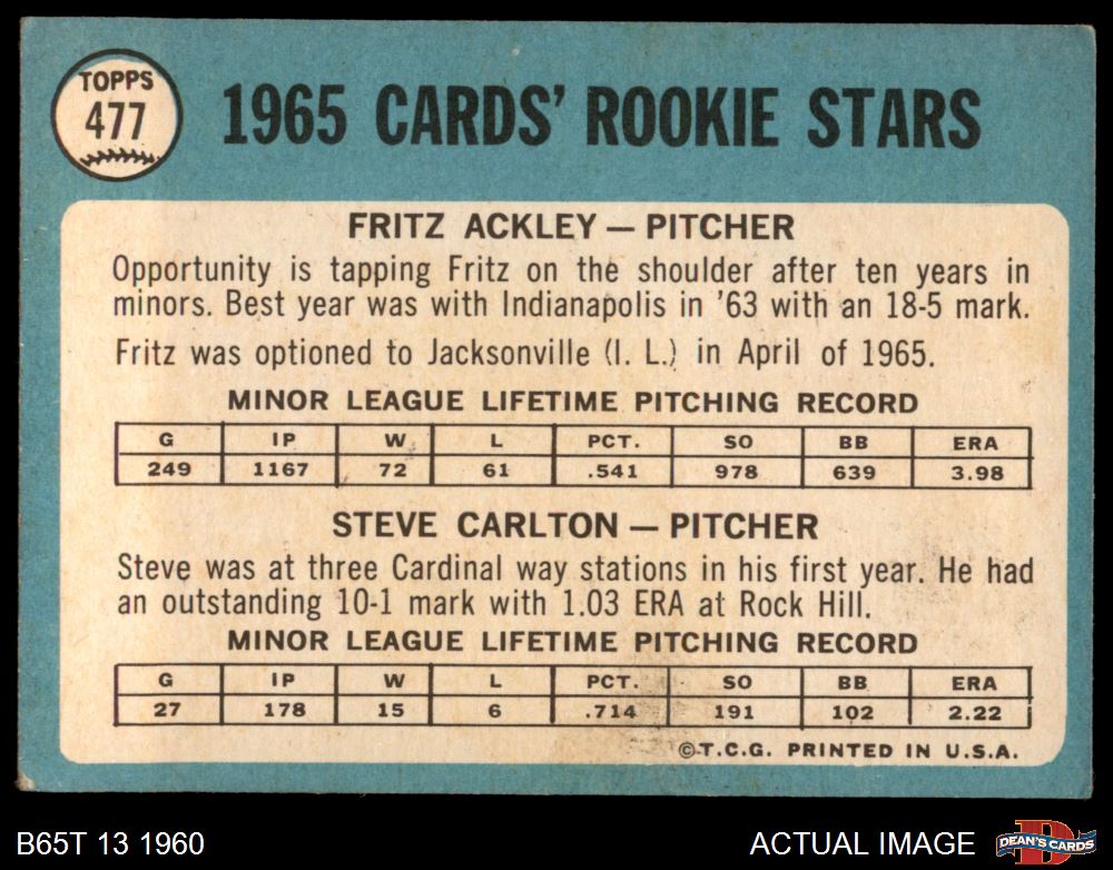 1965 Topps #477 - Steve Carlton / Fritz Ackley Cardinals Rookies 2.5 - GD+