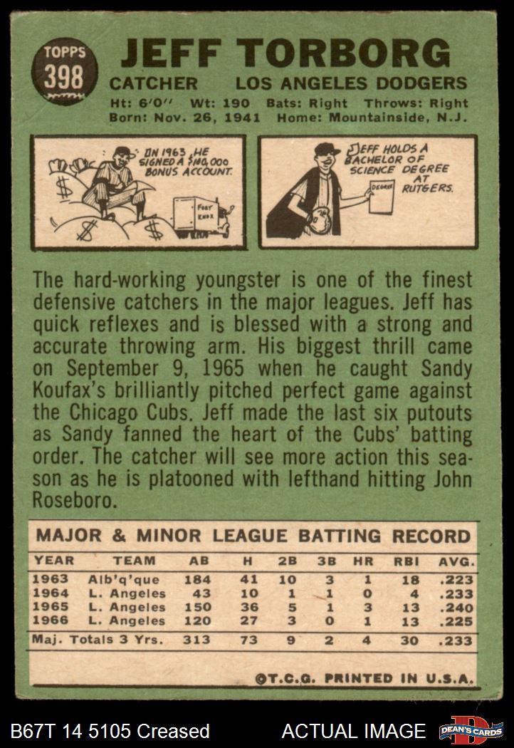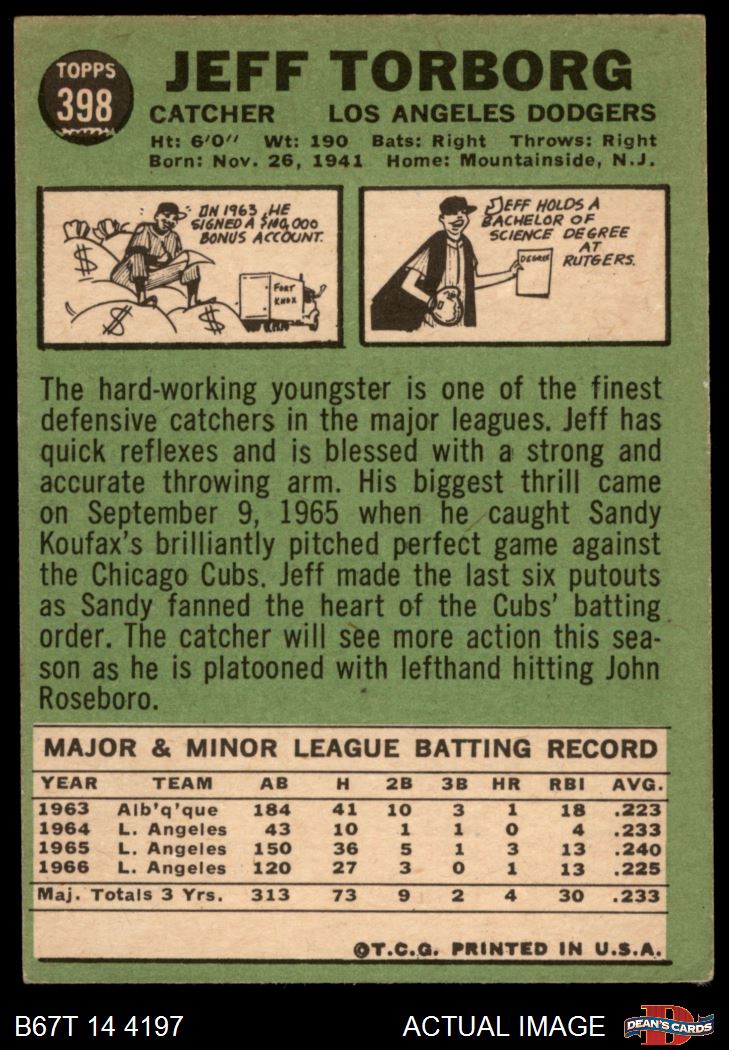 1967 Topps #398 Jeff Torborg 3 - VG