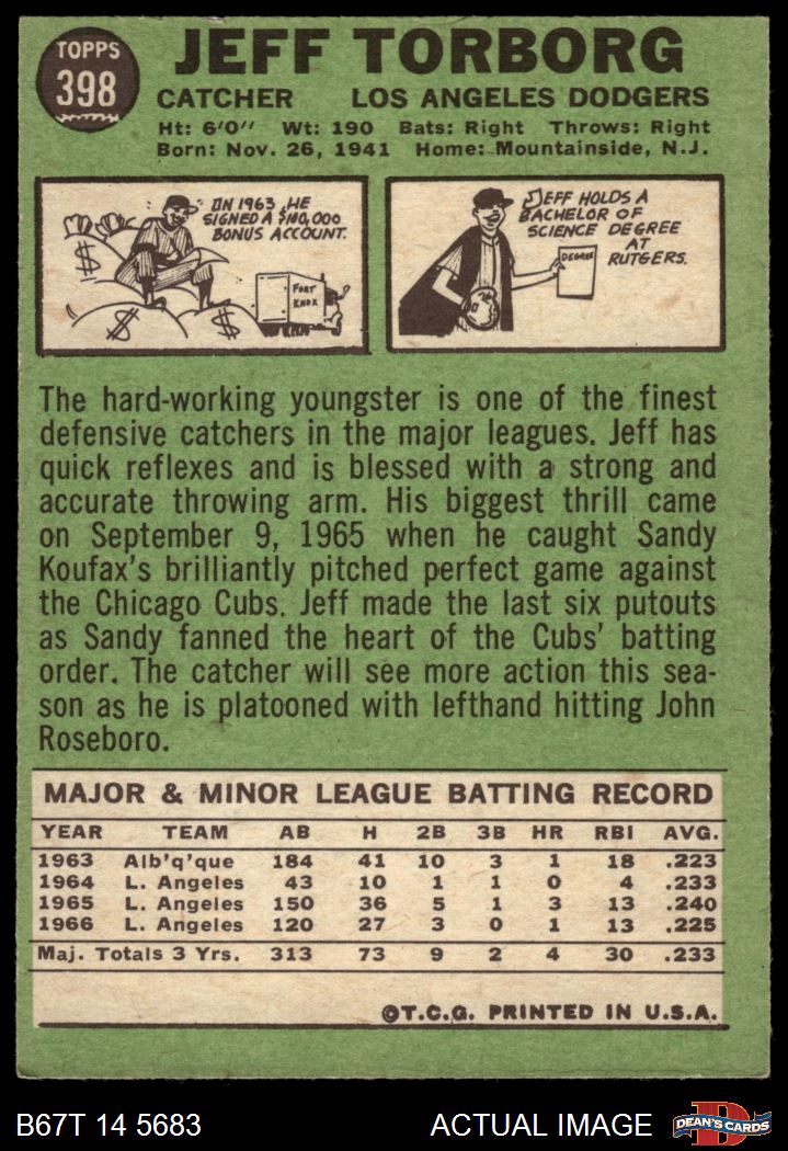 1967 Topps #398 Jeff Torborg 4 - VG/EX