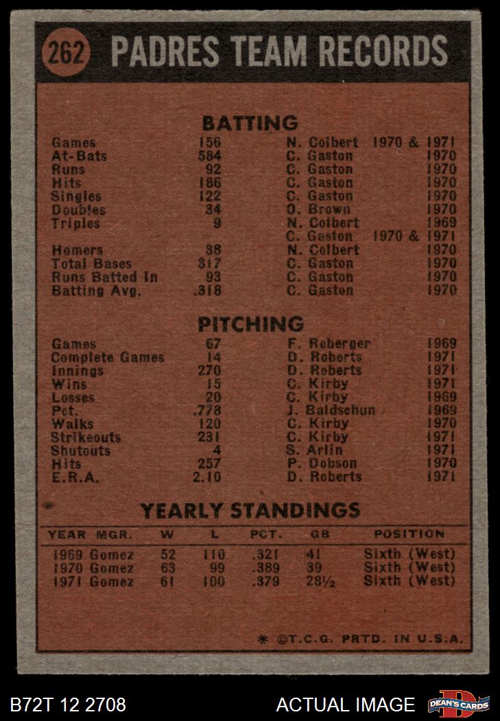 1972 Topps #262 Padres Team 2.5 - GD+