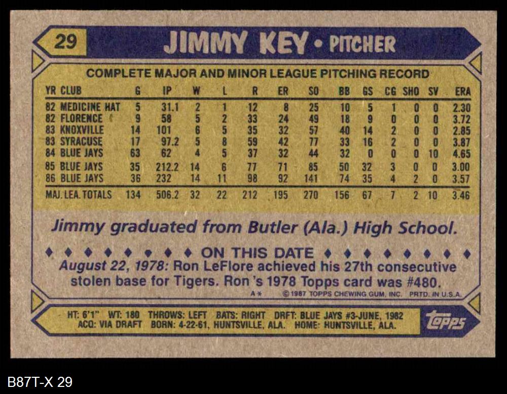 1987 Topps #29 Jimmy Key