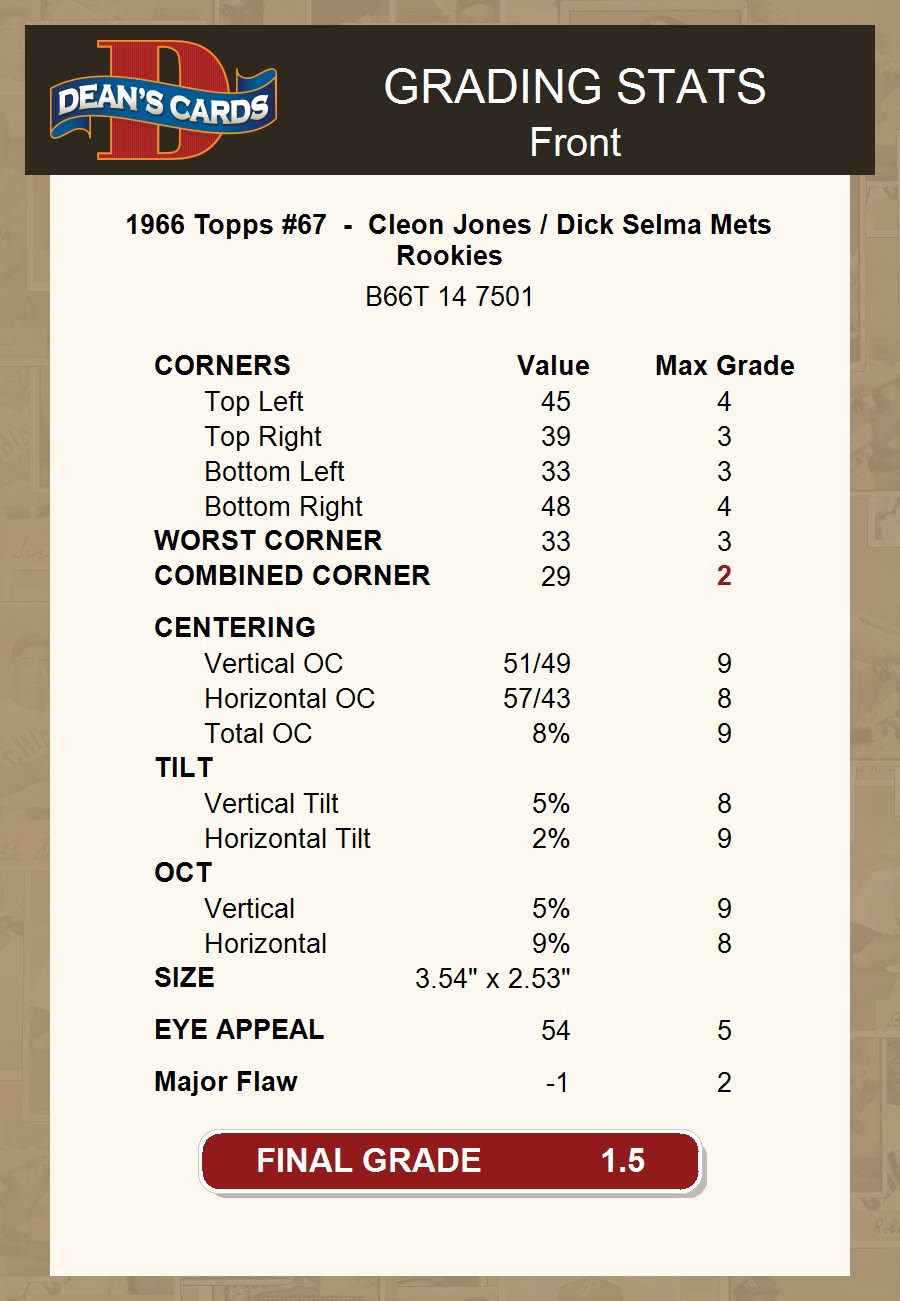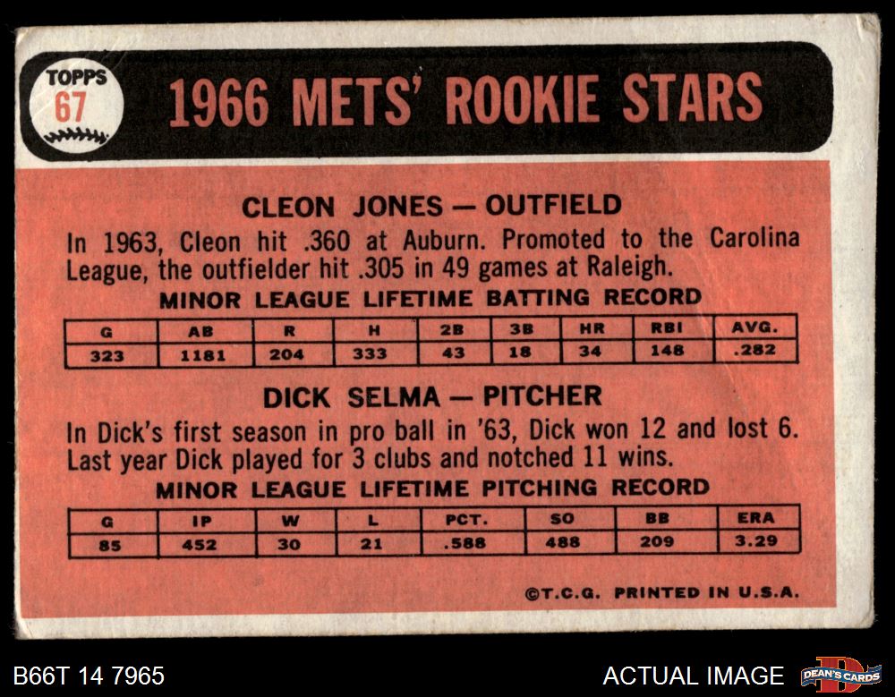 1966 Topps #67 - Cleon Jones / Dick Selma Mets Rookies 1.5 - FAIR