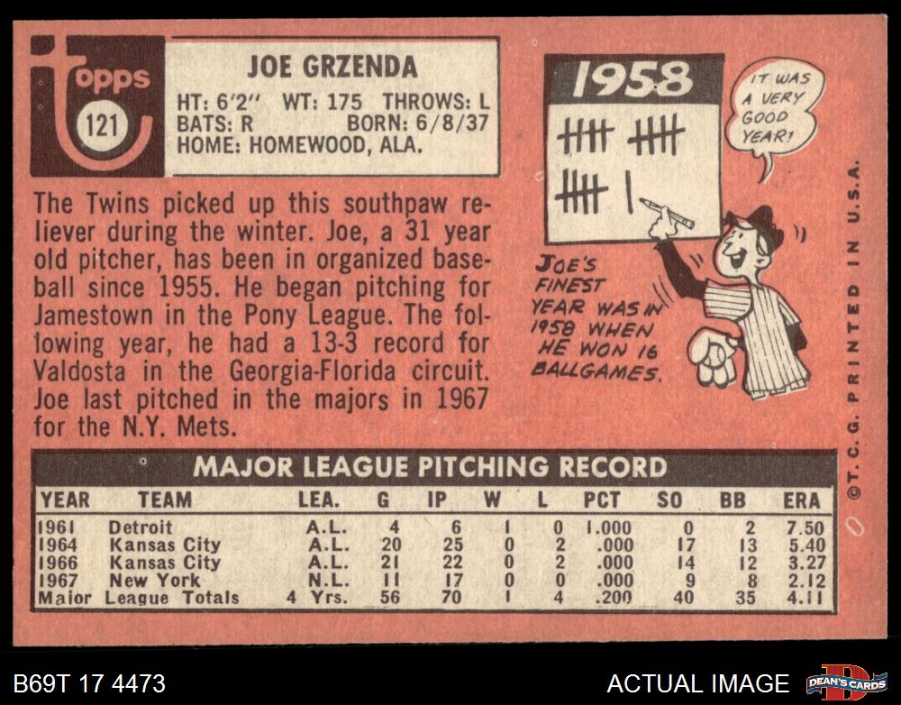 1969 Topps #121 Joe Grzenda 5 - EX