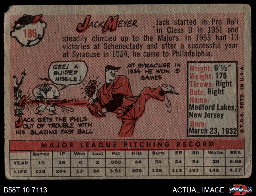 1958 Topps #186 Jack Meyer 1 - POOR