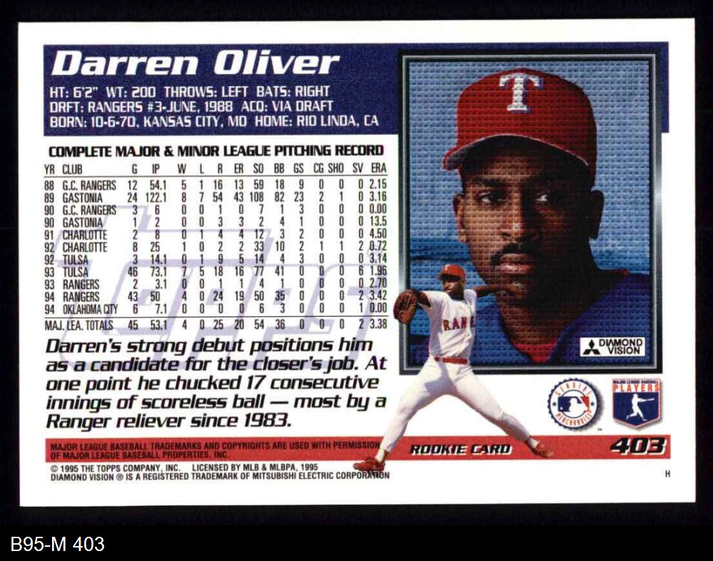 1995 Topps #403 Darren Oliver 8 - NM/MT