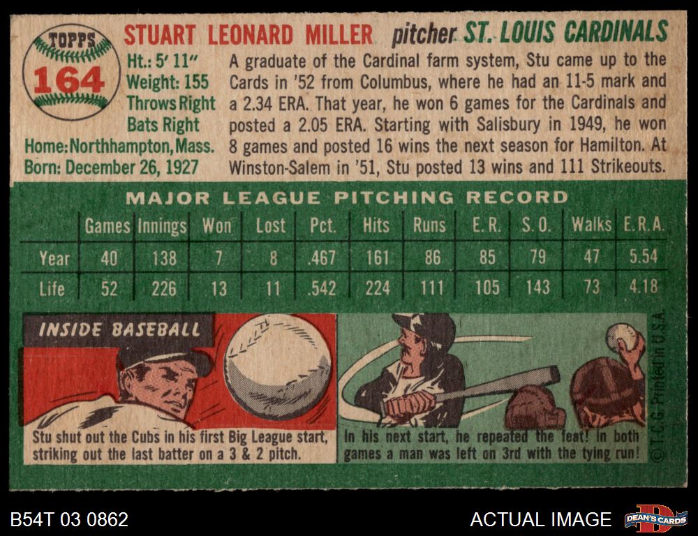 1954 Topps #164 Stu Miller 6 - EX/MT