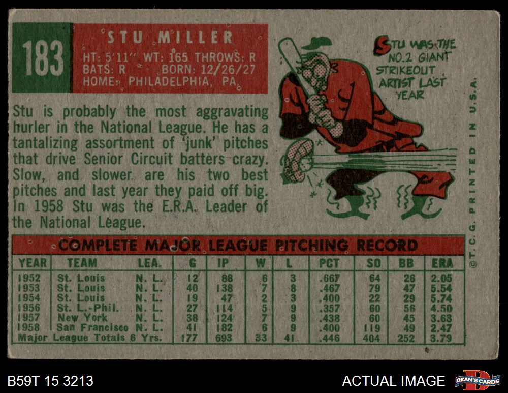1959 Topps #183 Stu Miller 2 - GOOD