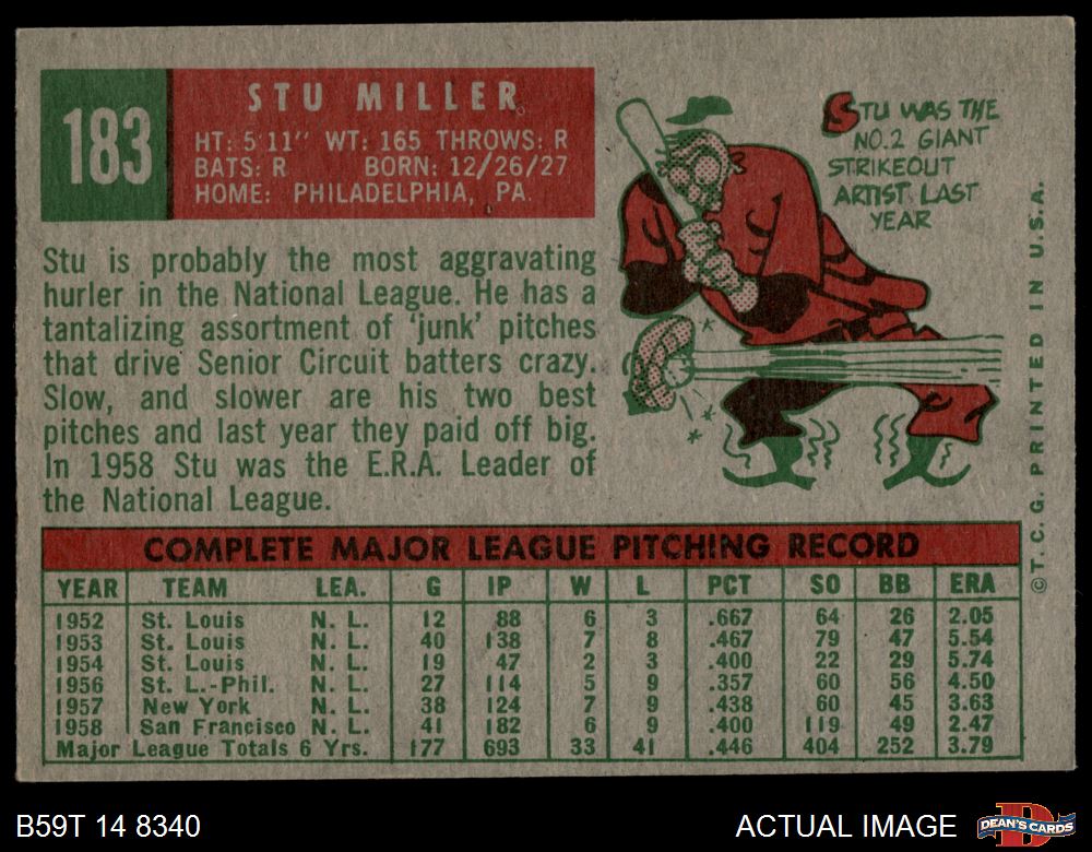 1959 Topps #183 Stu Miller 4 - VG/EX