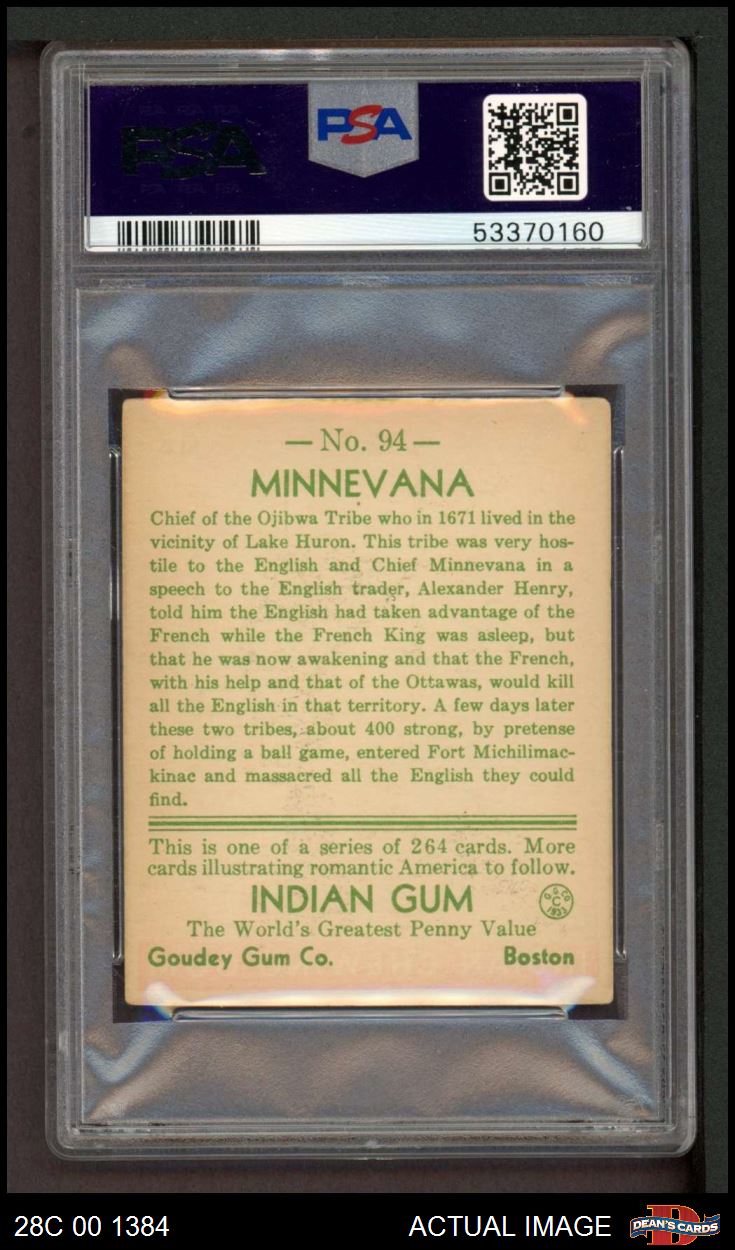 1933 Goudey Indian Gum #94 Minnevana PSA 4 - VG/EX
