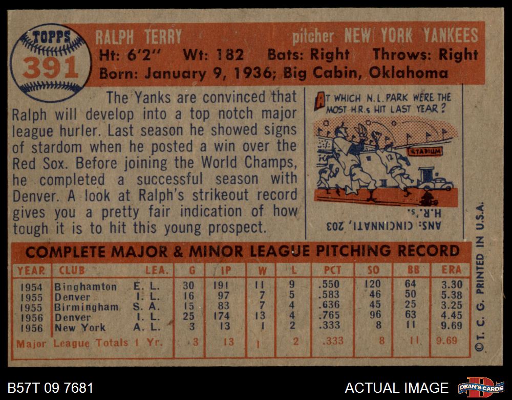 1957 Topps #391 Ralph Terry