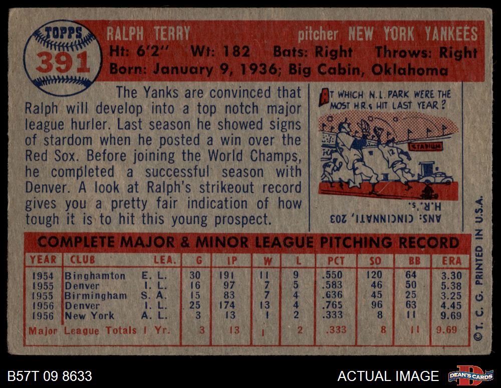 1957 Topps #391 Ralph Terry 2 - GOOD