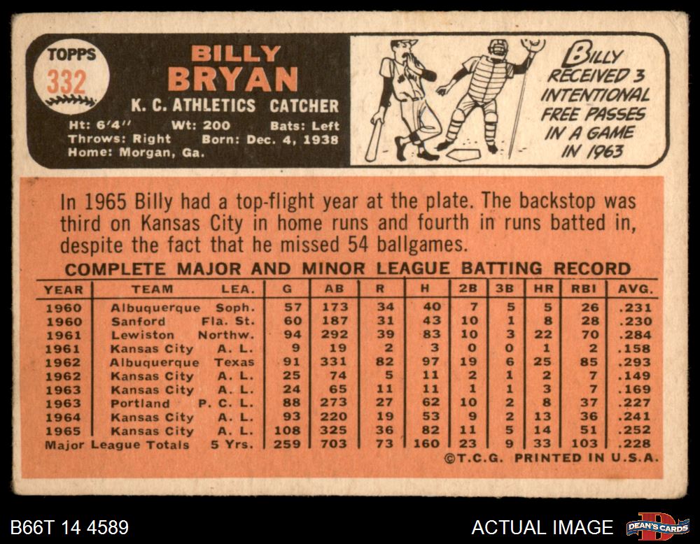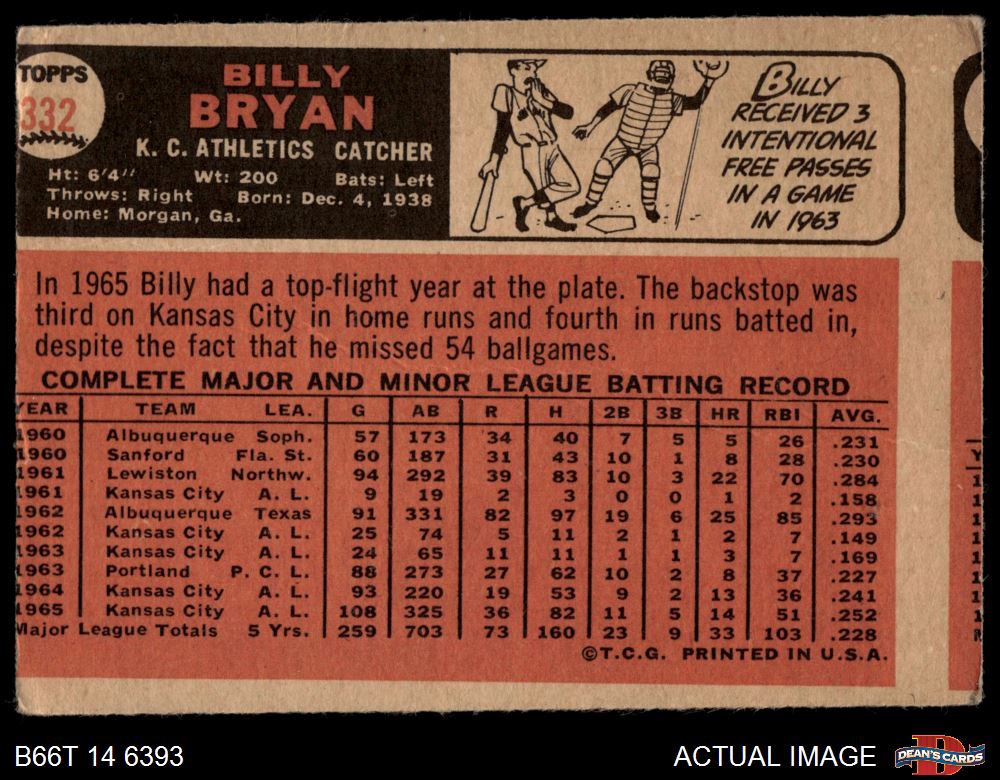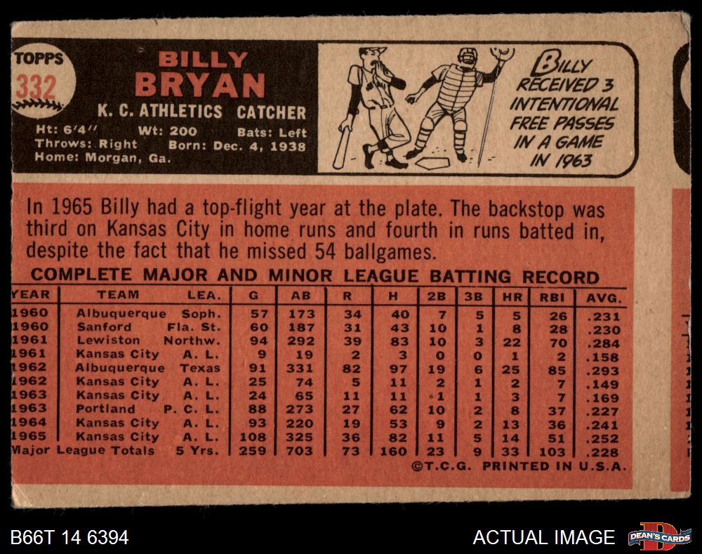 1966 Topps #332 Bill Bryan 1.5 - FAIR