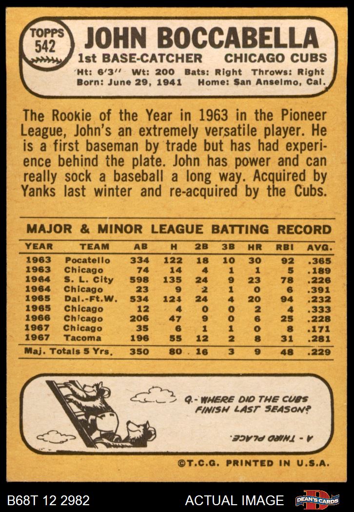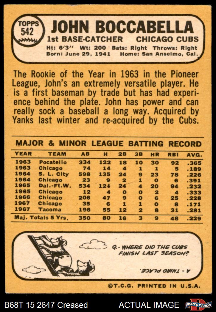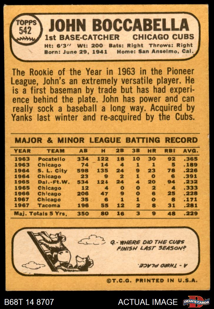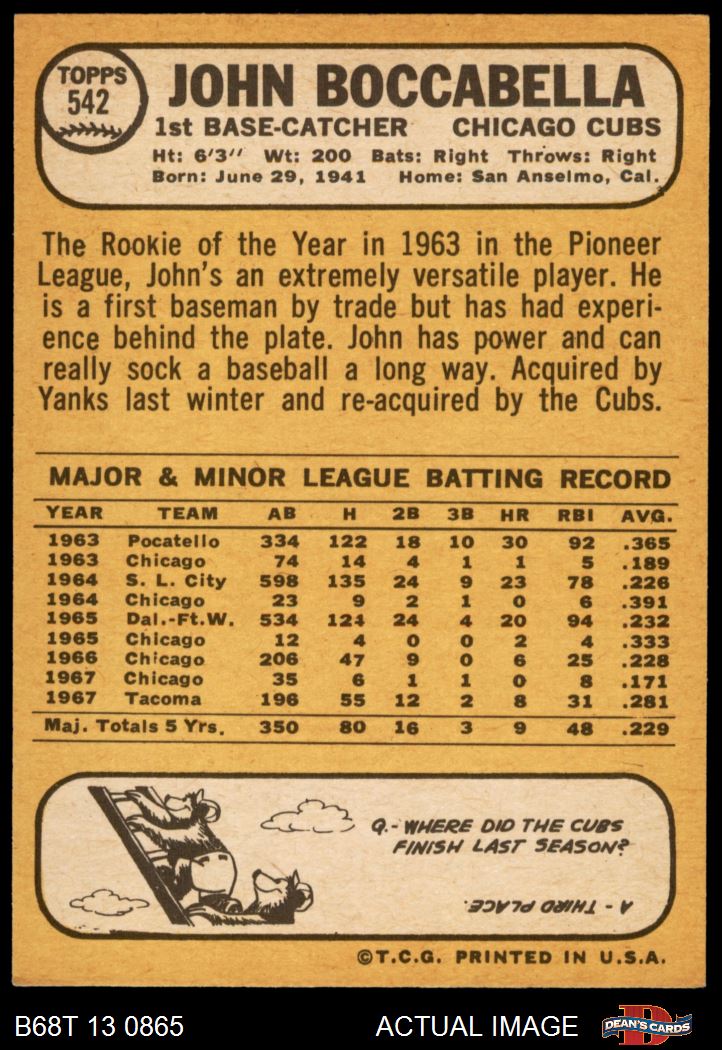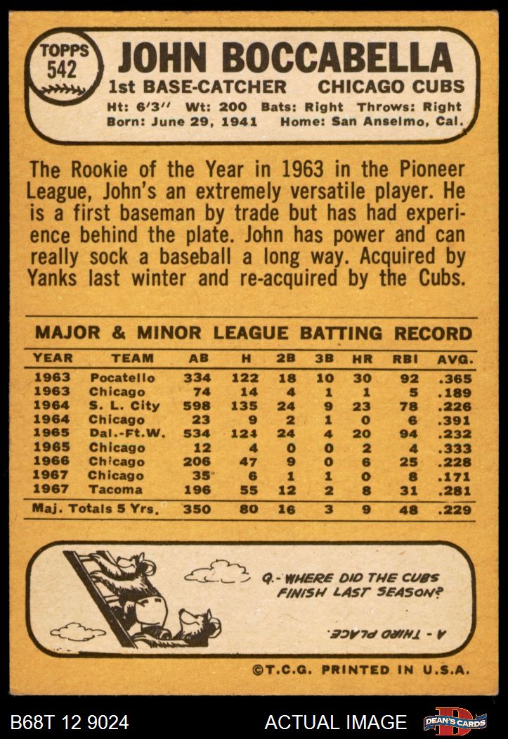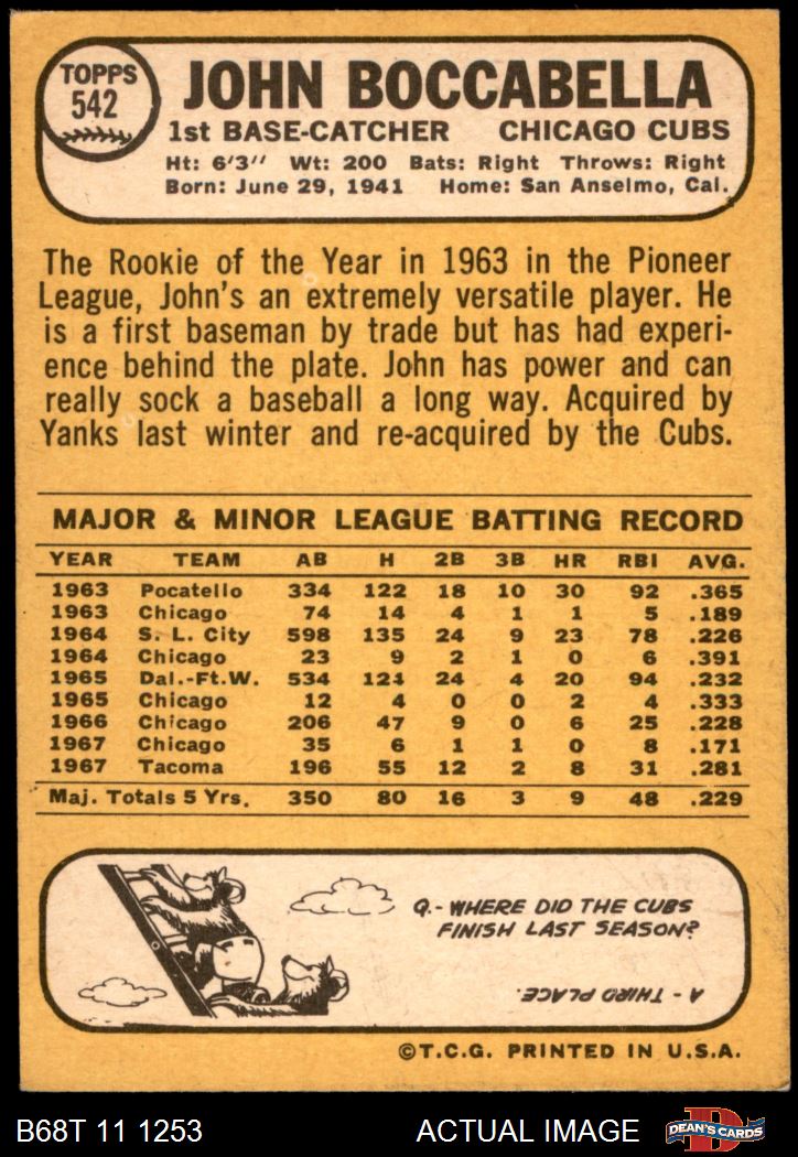1968 Topps #542 John Boccabella