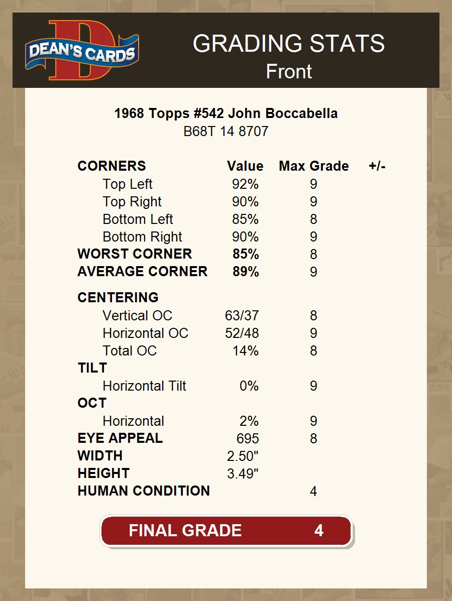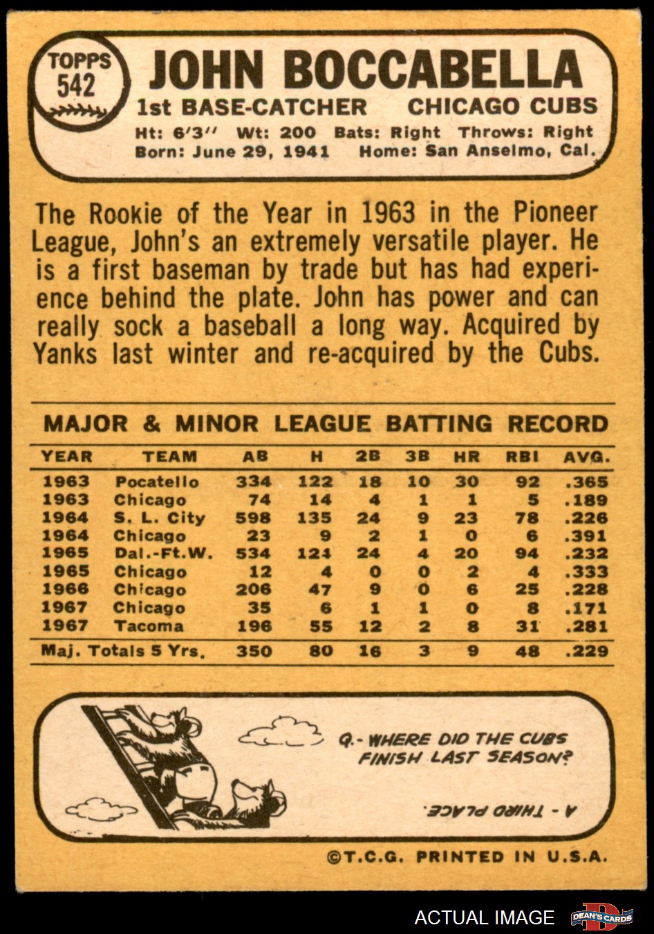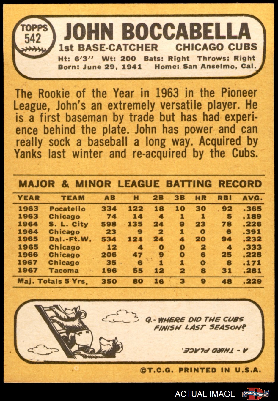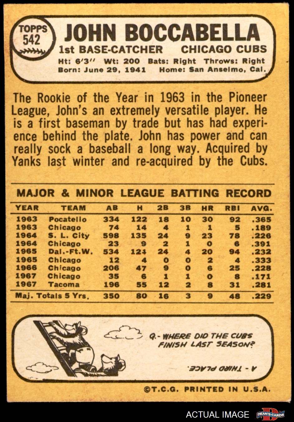 1968 Topps #542 John Boccabella