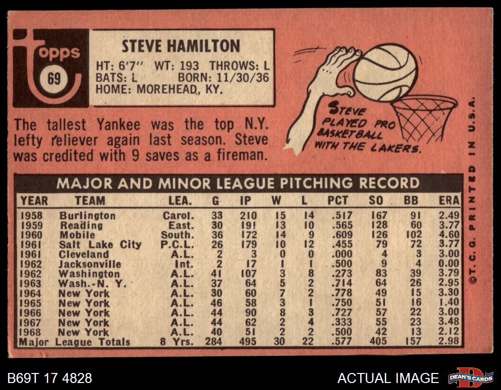 1969 Topps #69 Steve Hamilton 4 - VG/EX