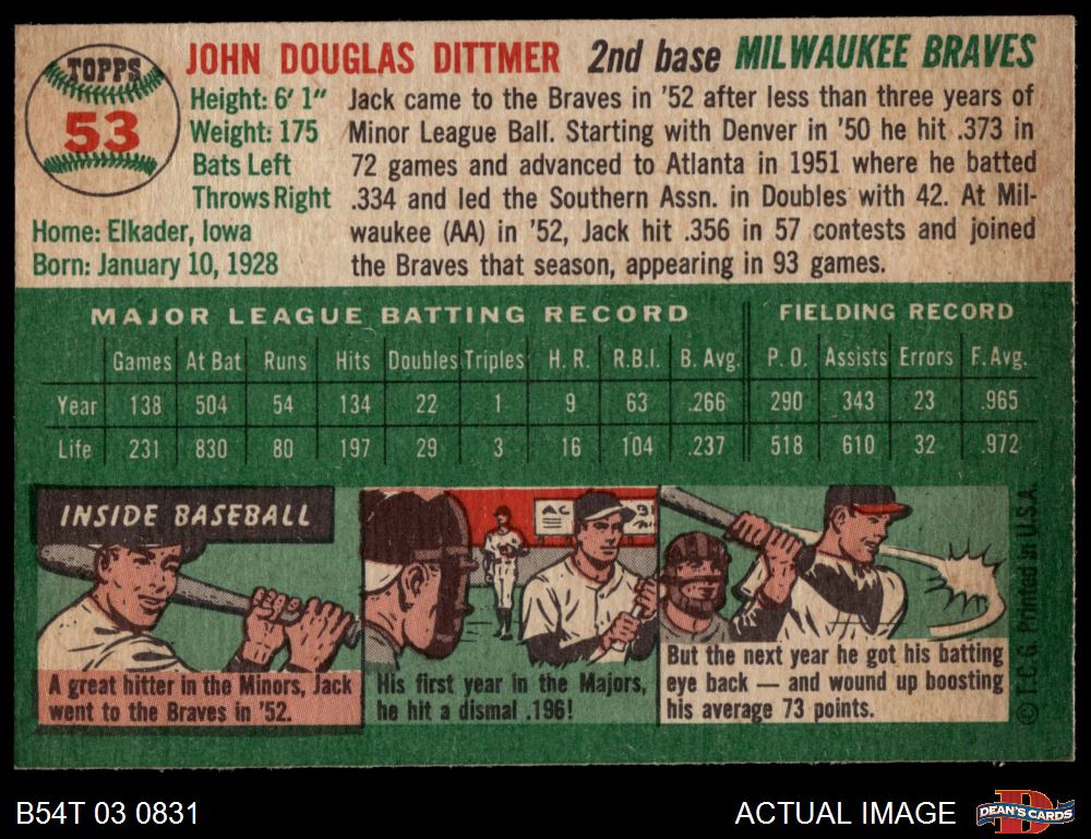 1954 Topps #53 Jack Dittmer 6 - EX/MT