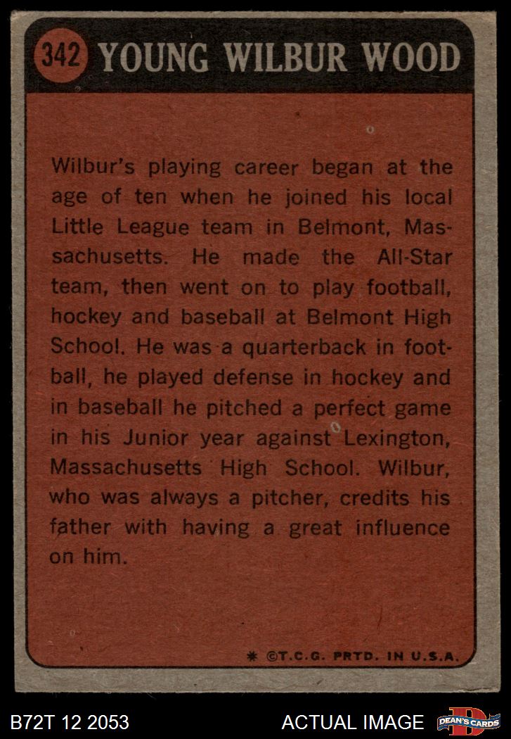 1972 Topps #342 - Wilbur Wood Boyhood Photo 4 - VG/EX