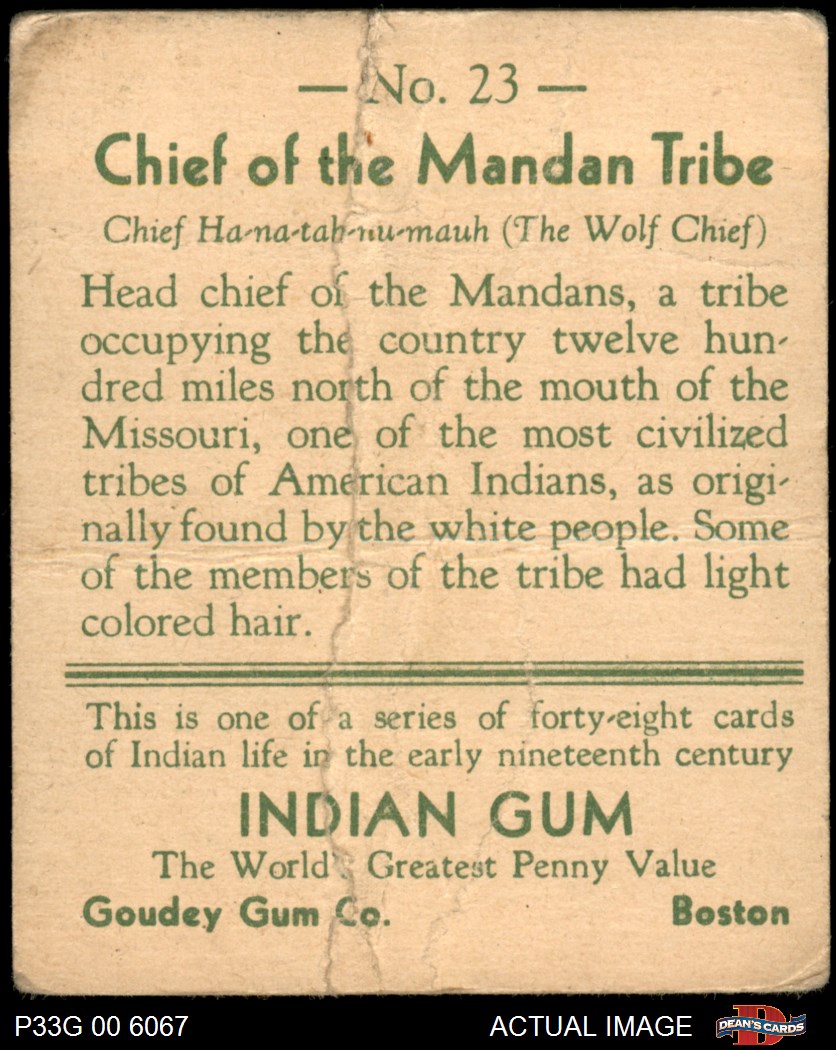 1933 Goudey Indian Gum #23 Mandan Tribe 1 - POOR