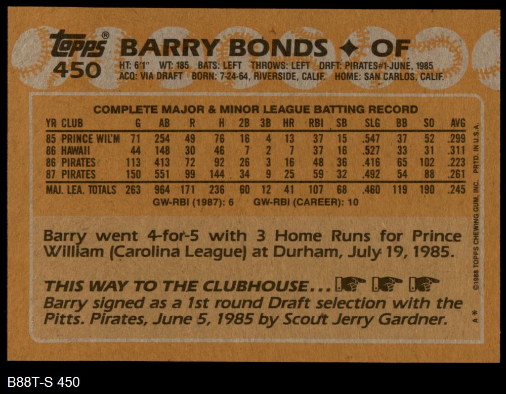 1988 Topps #450 Barry Bonds 8 - NM/MT