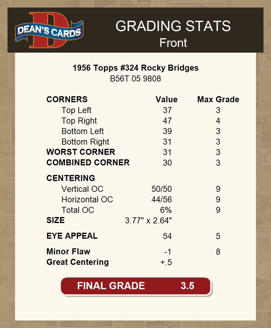 1956 Topps #324 Rocky Bridges 3.5 - VG+