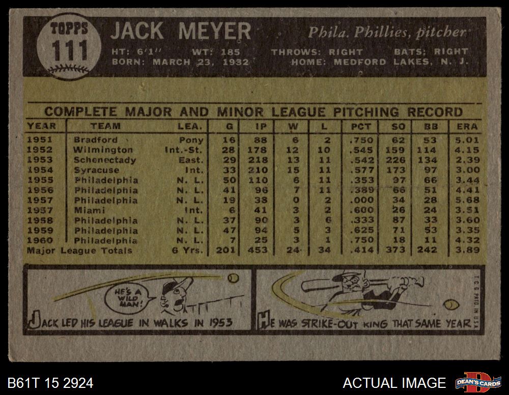 1961 Topps #111 Jack Meyer
