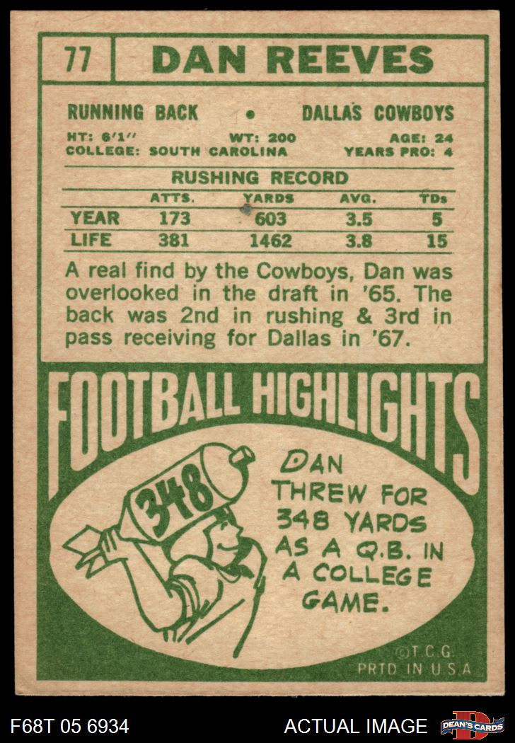 1968 Topps #77 Dan Reeves 4 - VG/EX