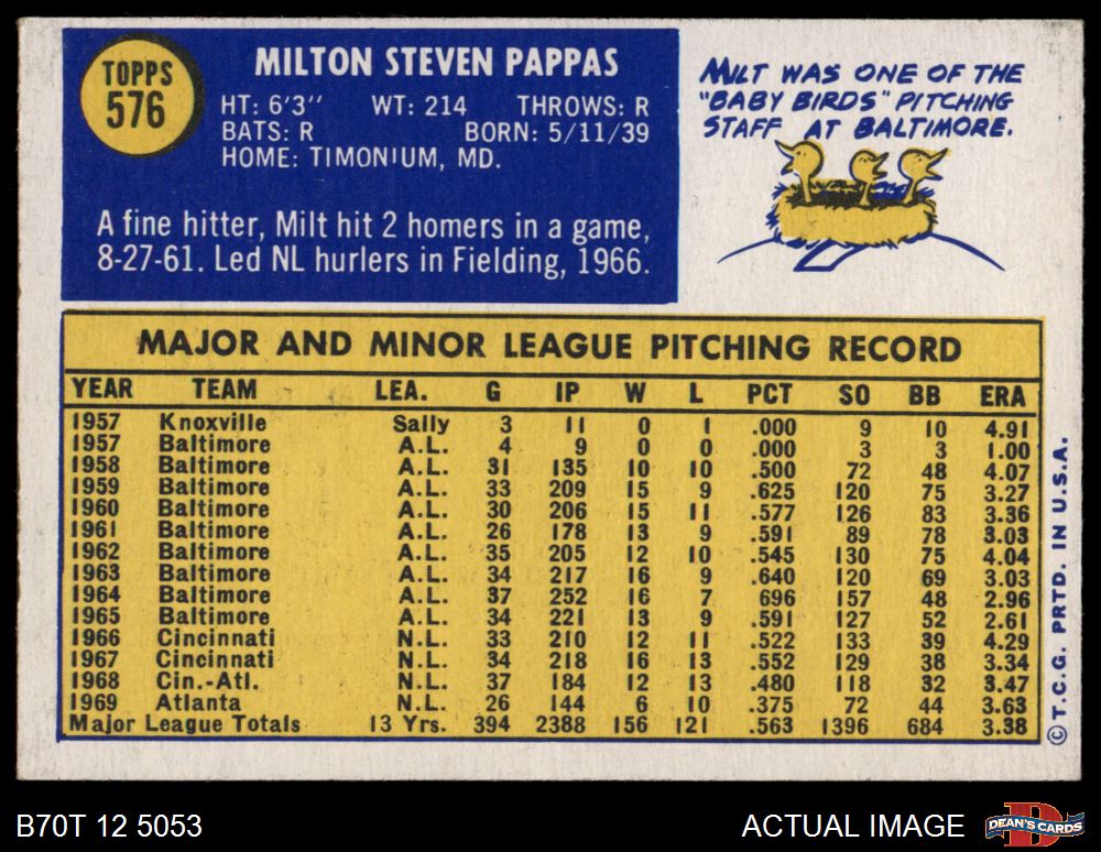 1970 Topps #576 Milt Pappas 4 - VG/EX