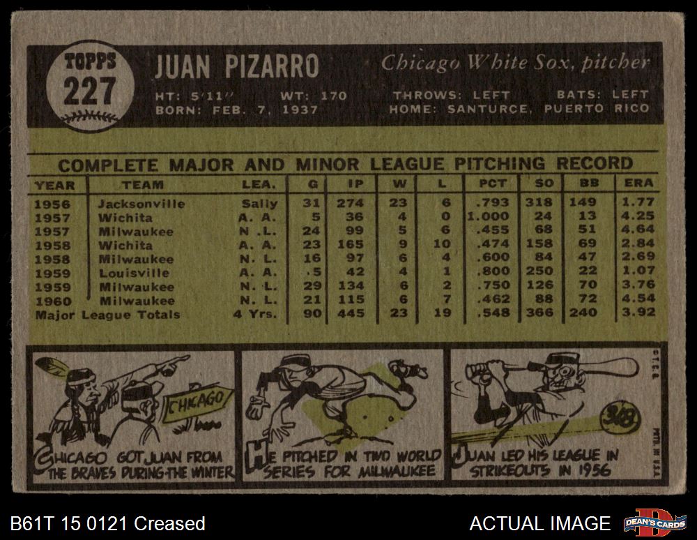 1961 Topps #227 Juan Pizarro 2 - GOOD
