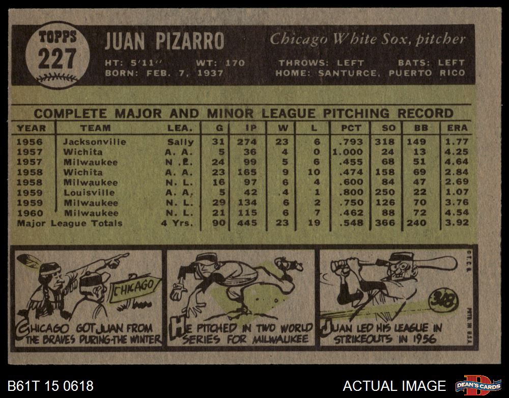 1961 Topps #227 Juan Pizarro 3 - VG