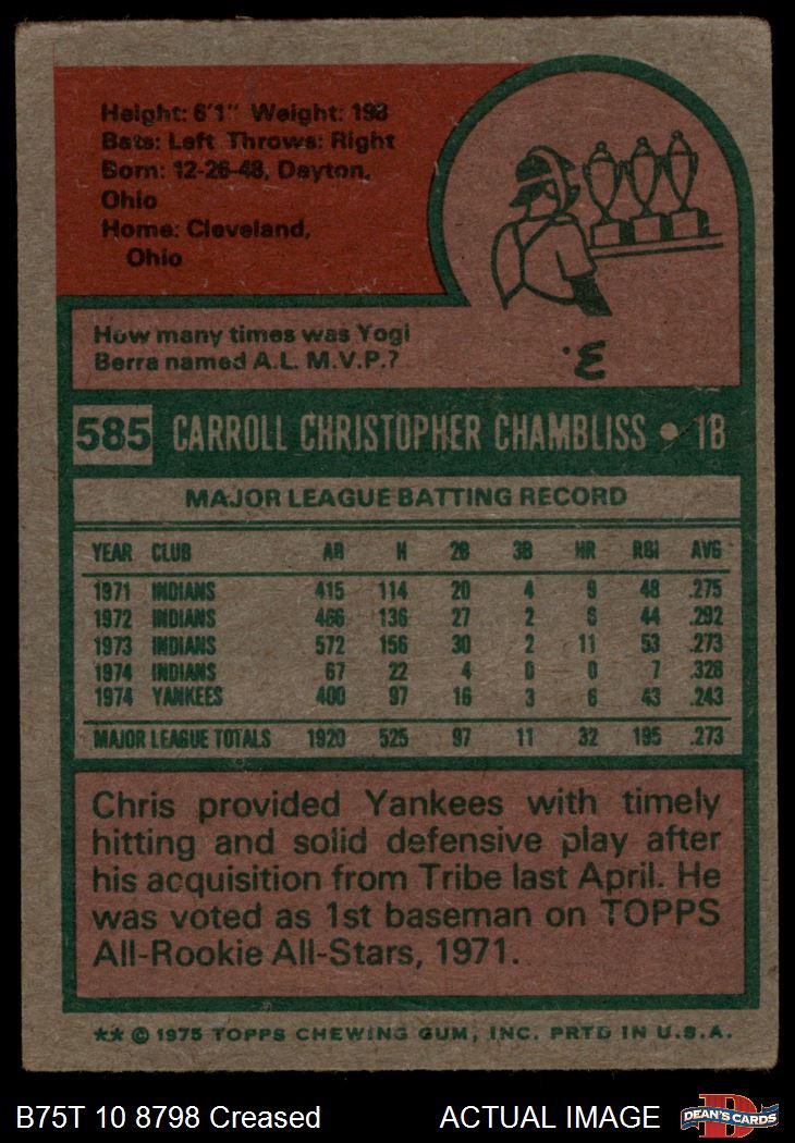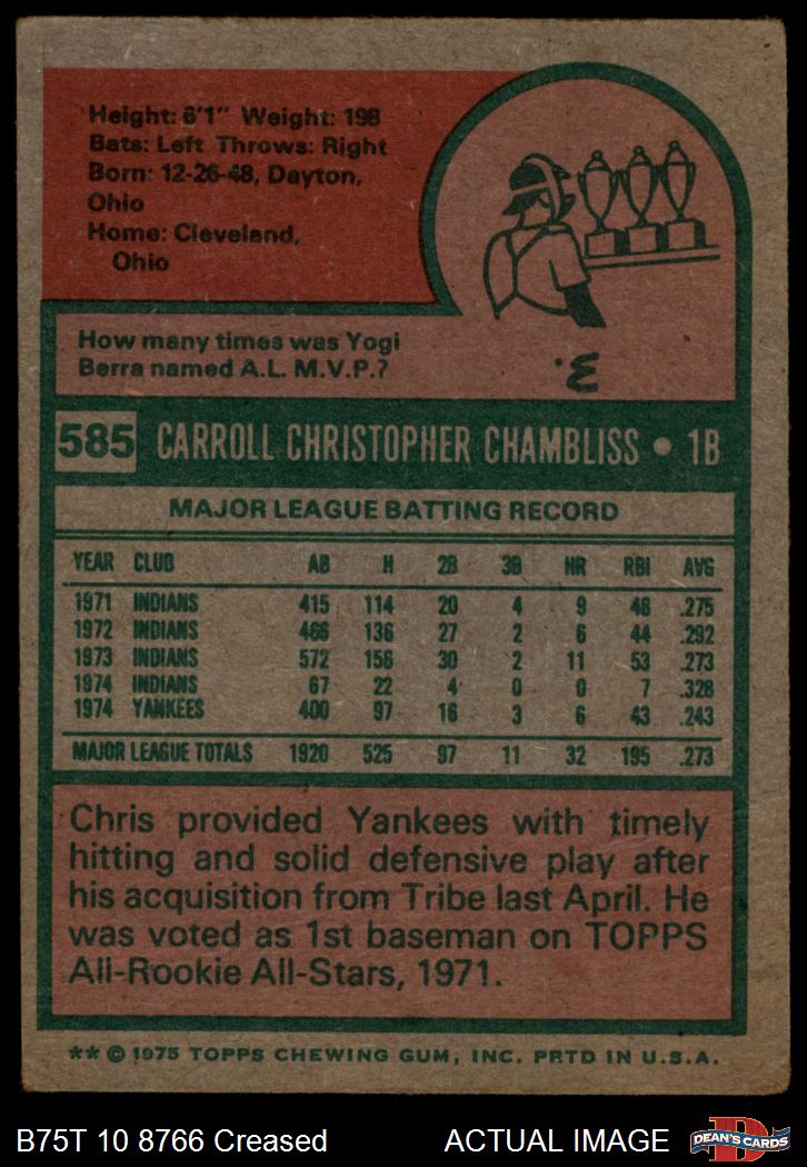 1975 Topps #585 Chris Chambliss 2 - GOOD