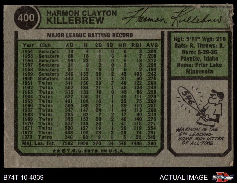 1974 Topps #400 Harmon Killebrew AUTHENTIC