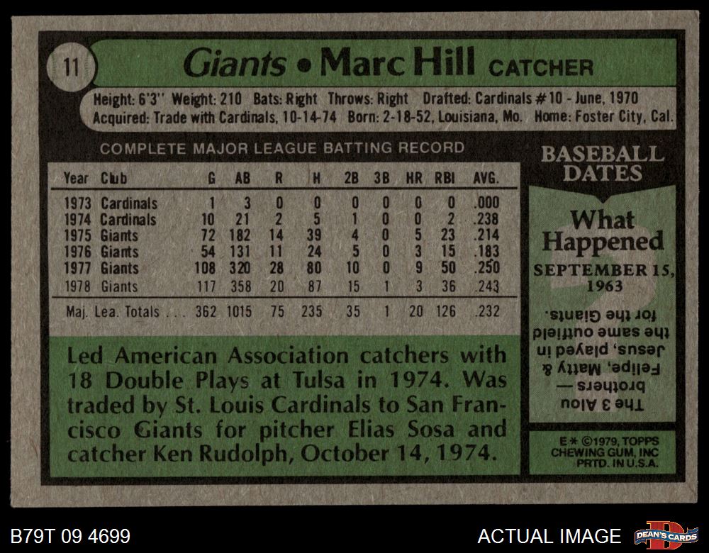 1979 Topps #11 Marc Hill