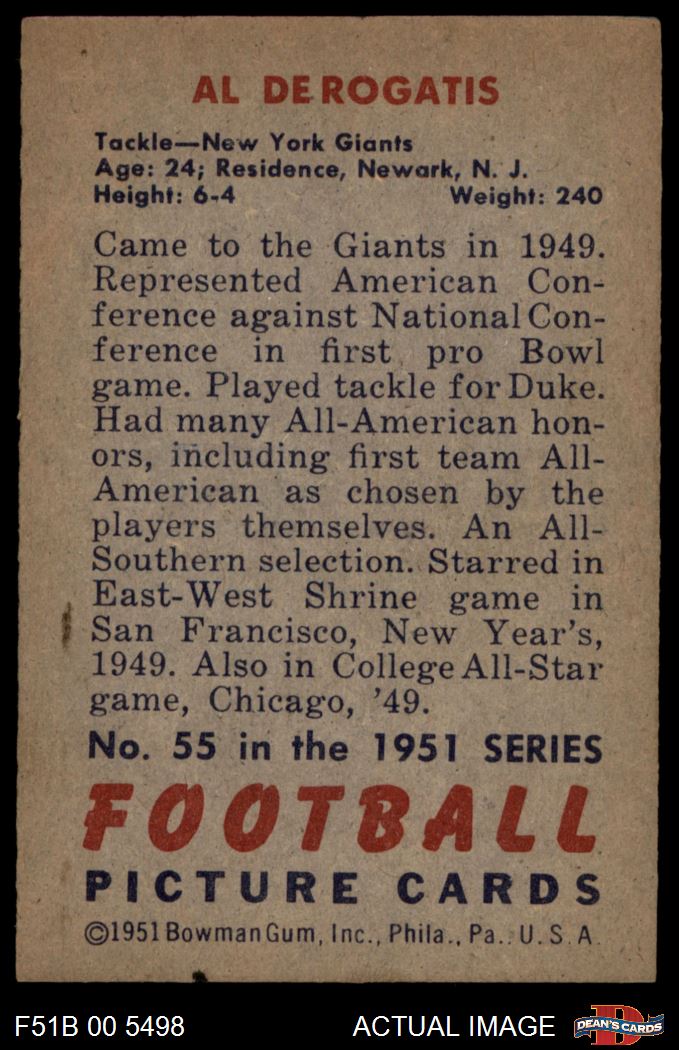 1951 Bowman #55 Al DeRogatis 4 - VG/EX