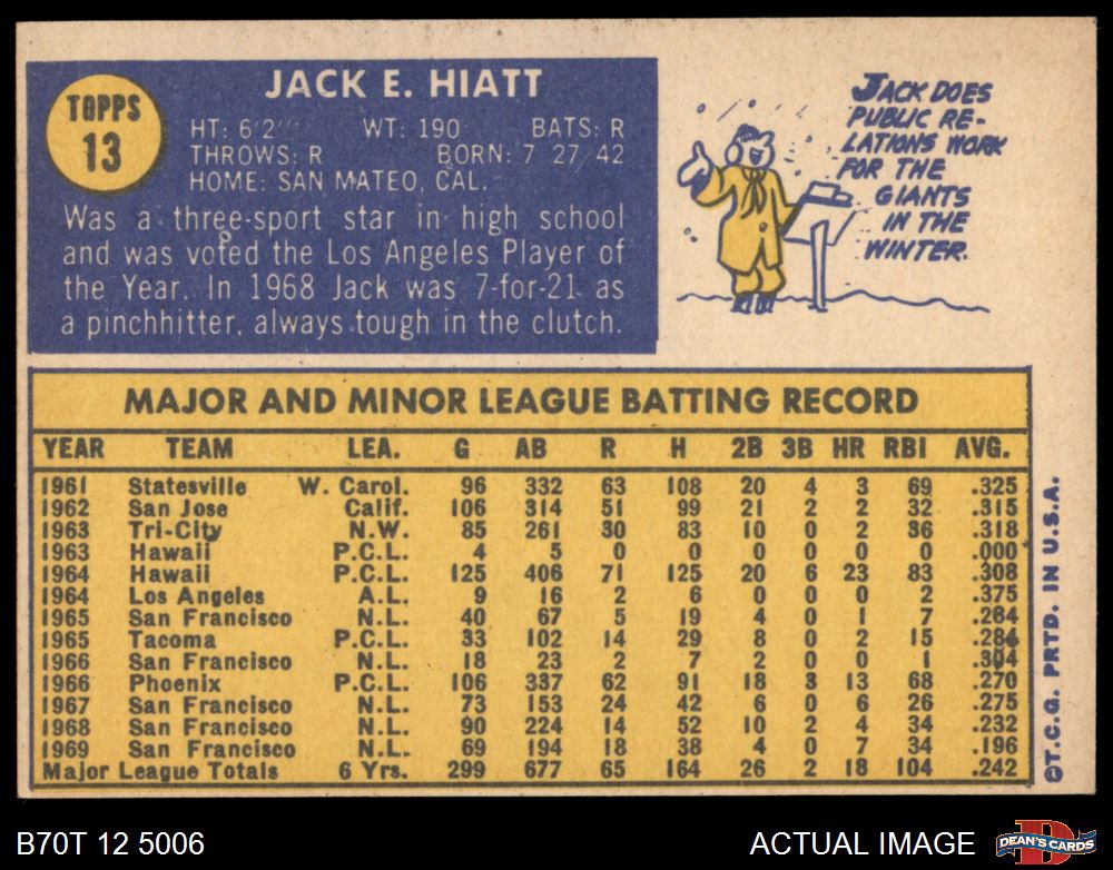 1970 Topps #13 Jack Hiatt 4 - VG/EX