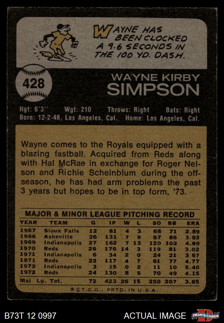 1973 Topps #428 Wayne Simpson 2 - GOOD