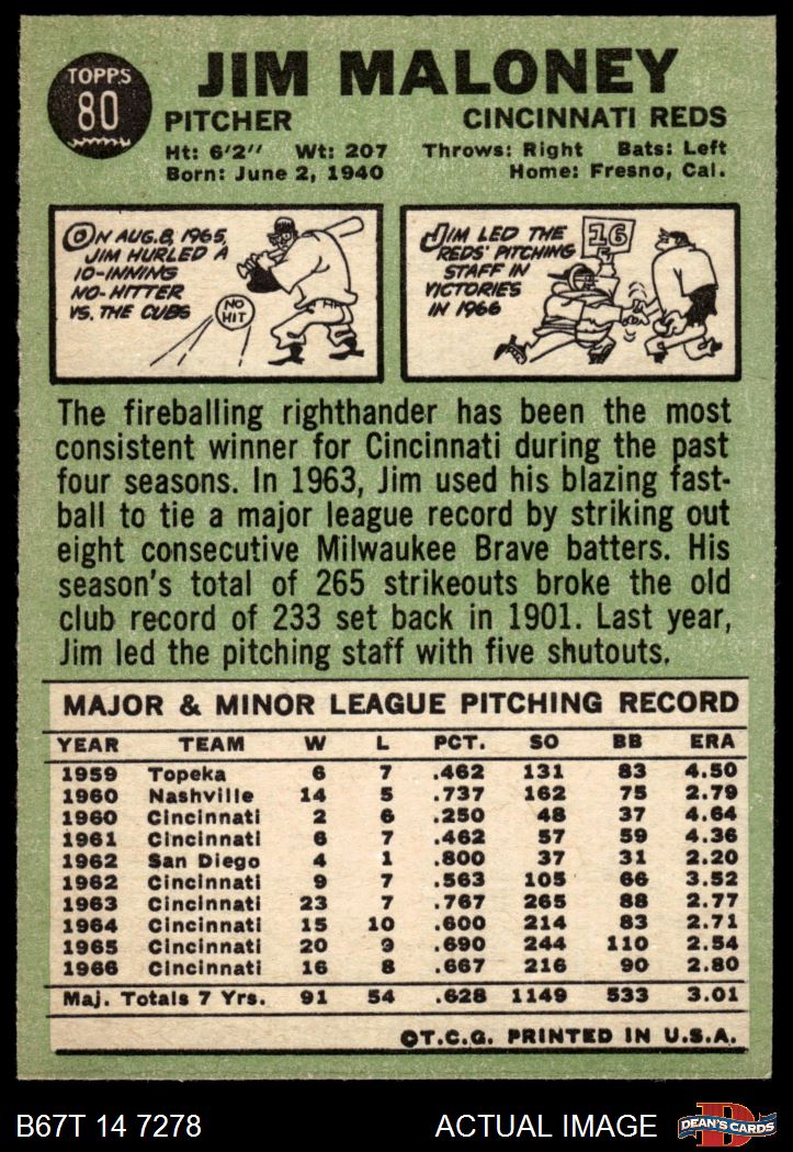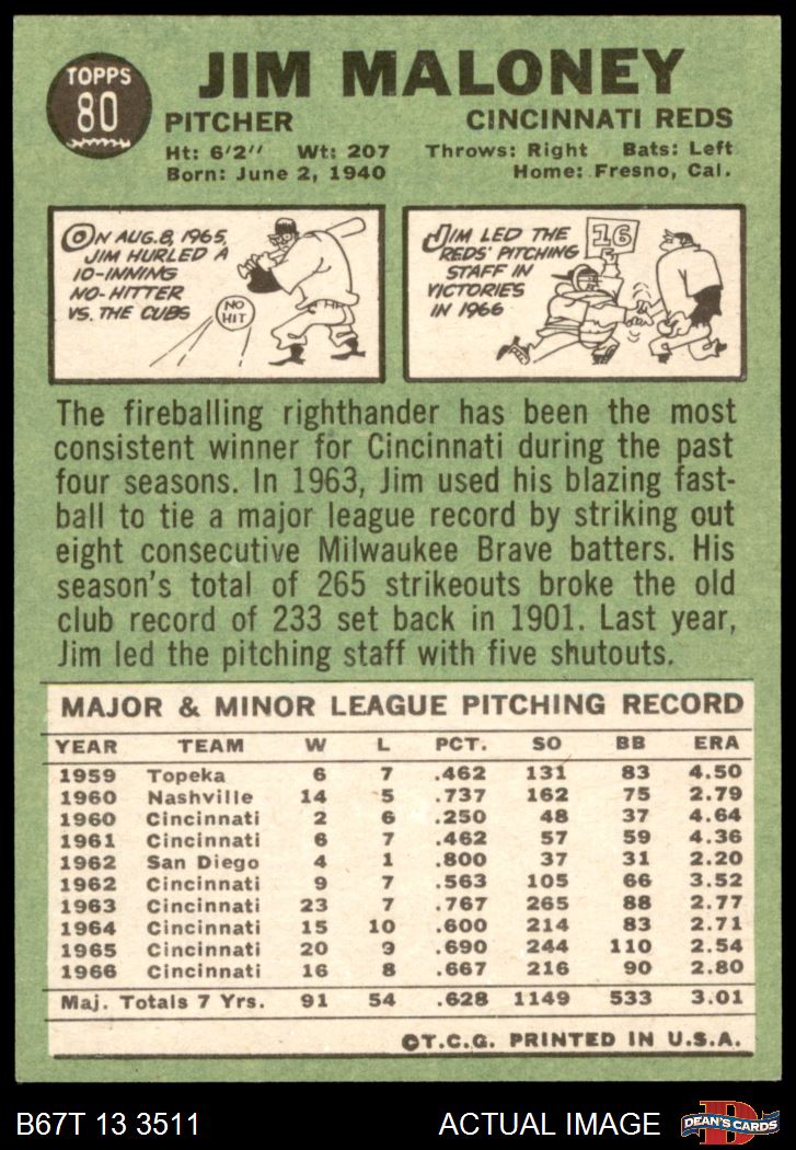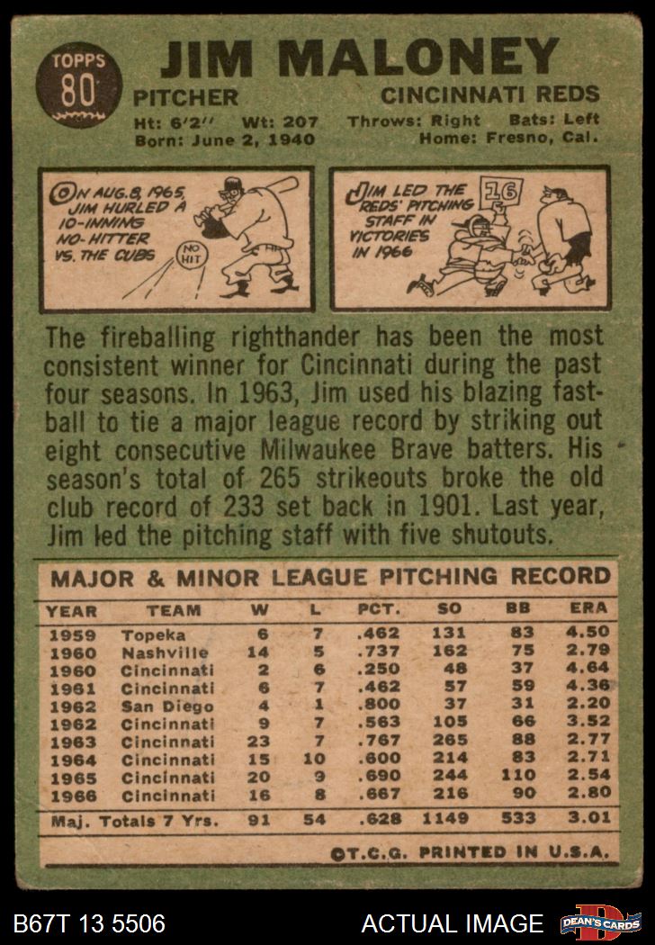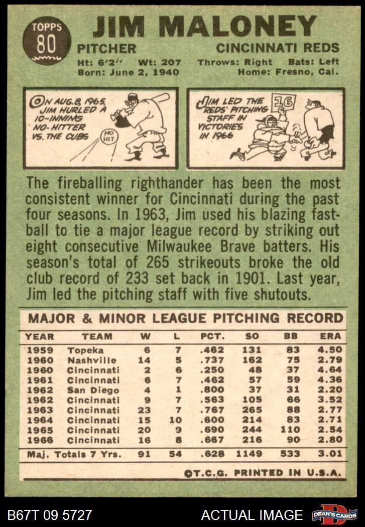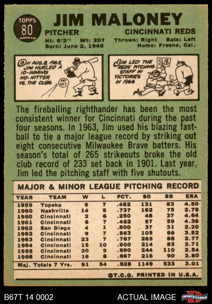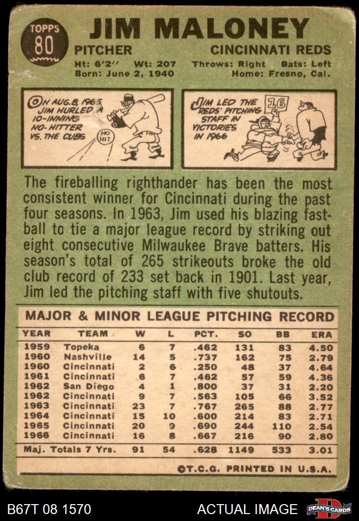 1967 Topps #80 Jim Maloney