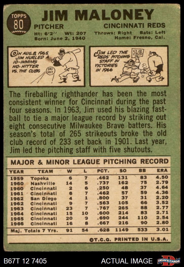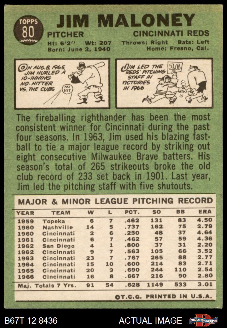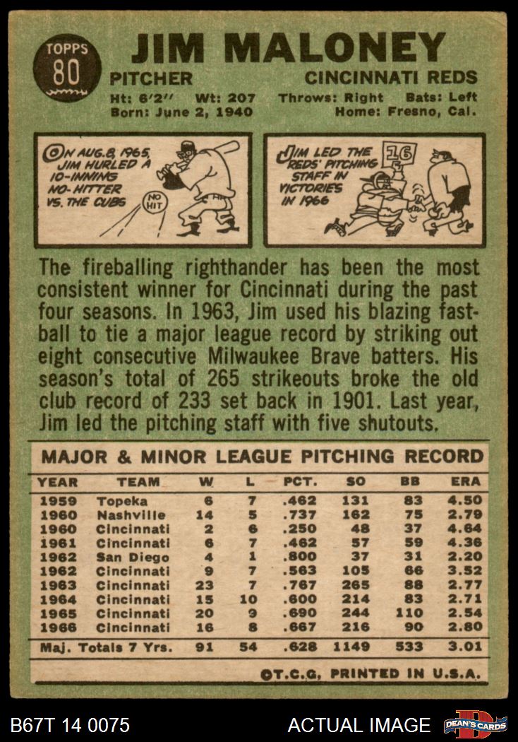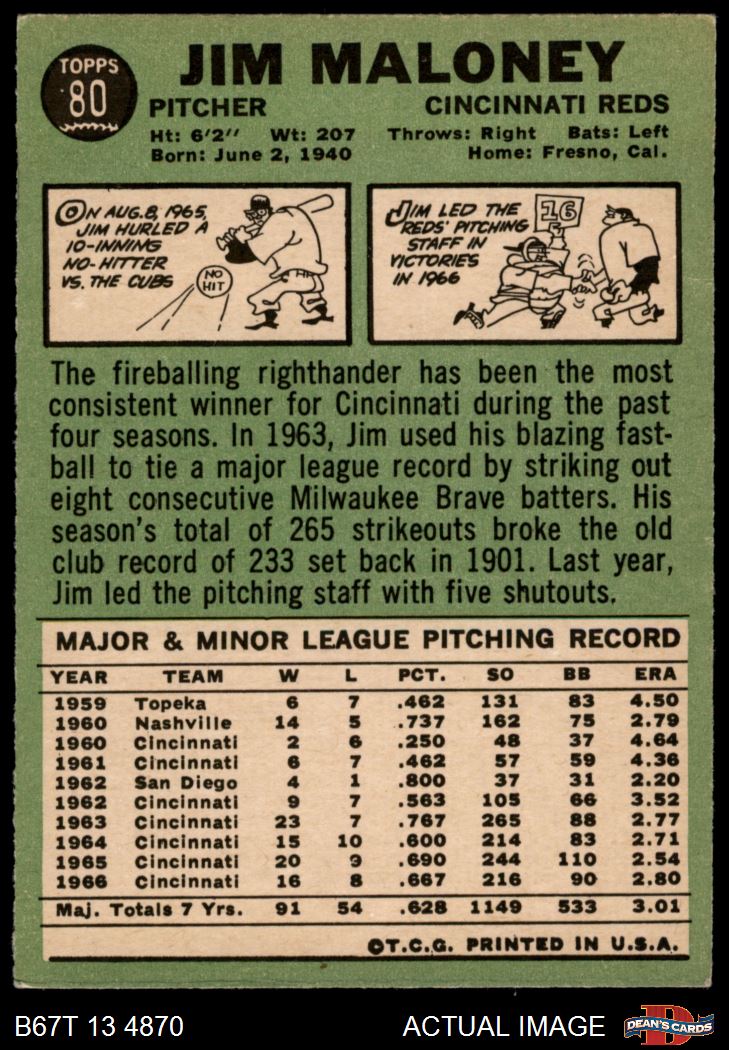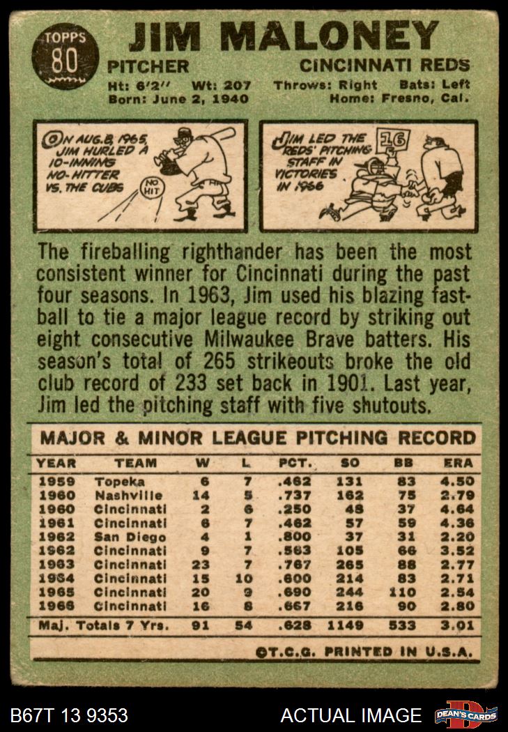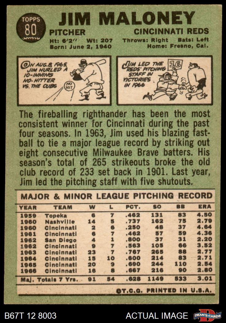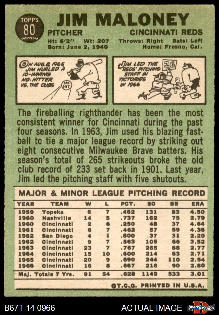 1967 Topps #80 Jim Maloney