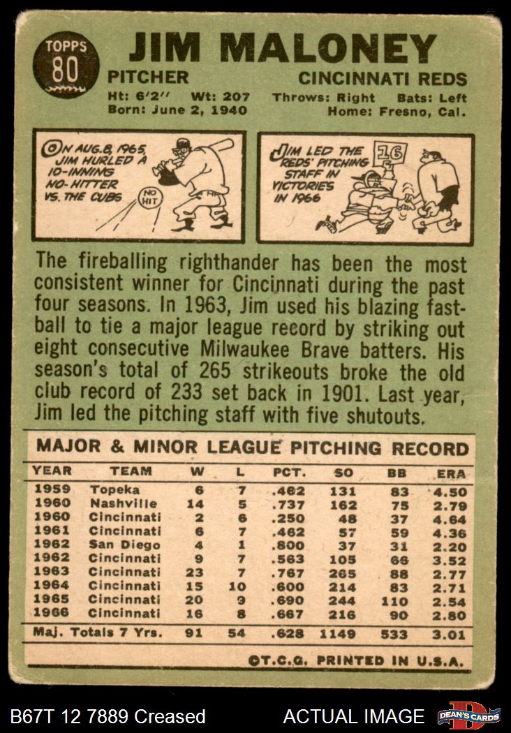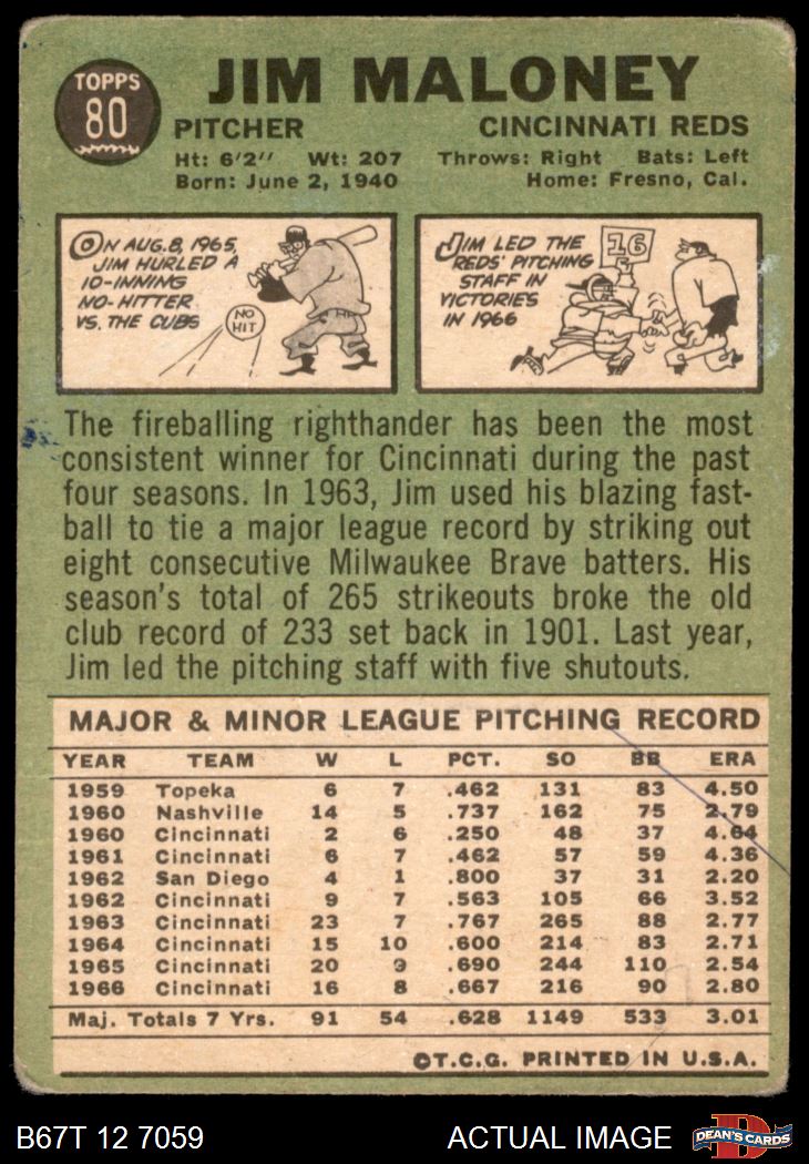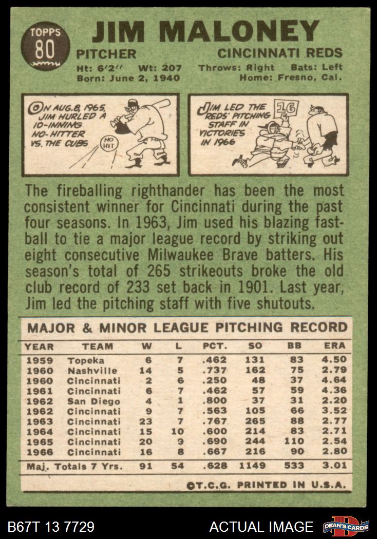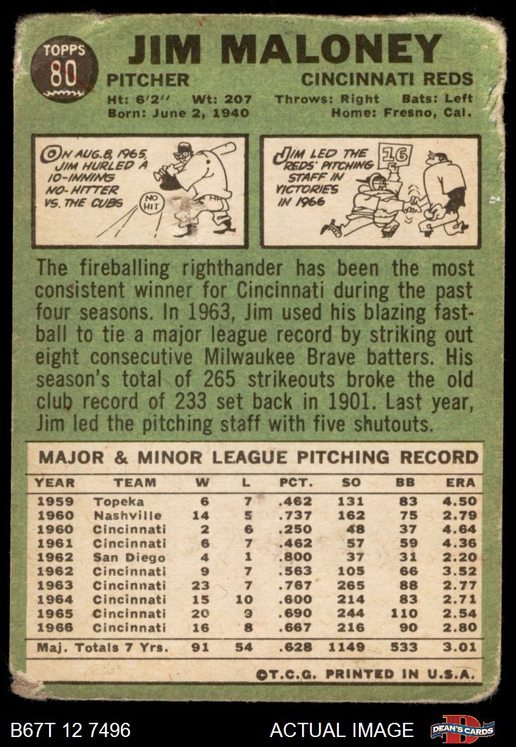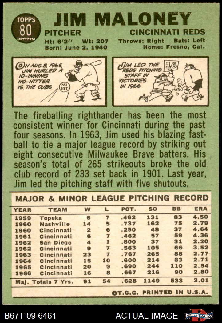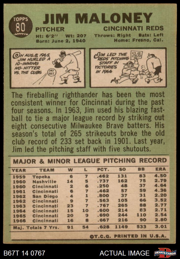 1967 Topps #80 Jim Maloney