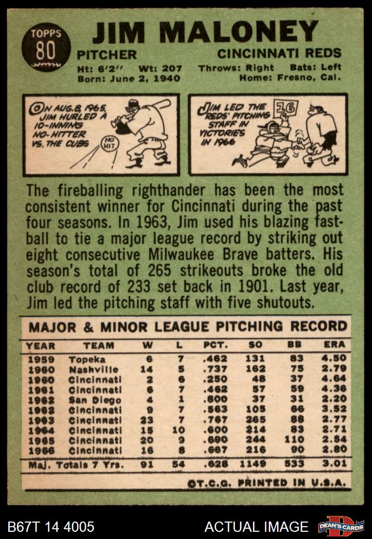 1967 Topps #80 Jim Maloney 5.5 - EX+