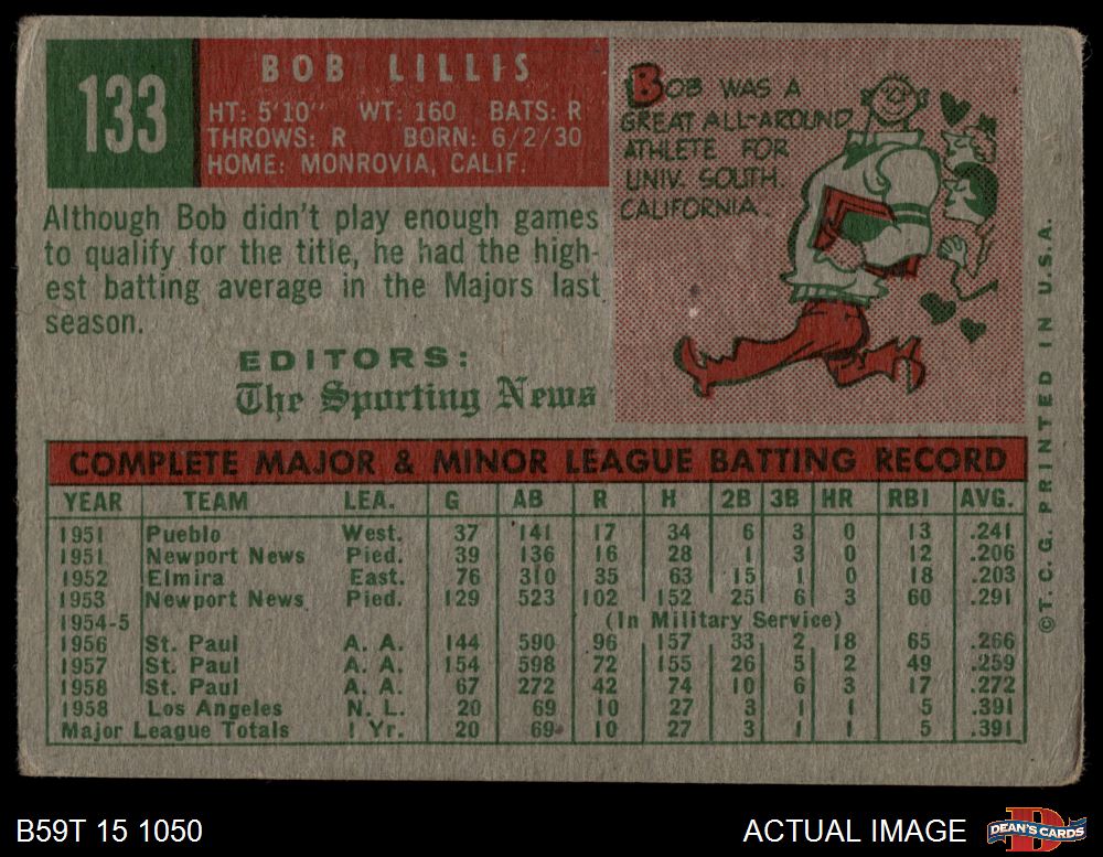 1959 Topps #133 Bob Lillis Front Thumbnail