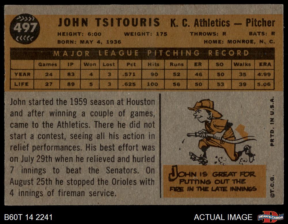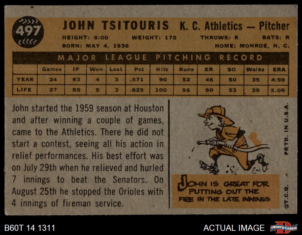 1960 Topps #497 John Tsitouris 4 - VG/EX