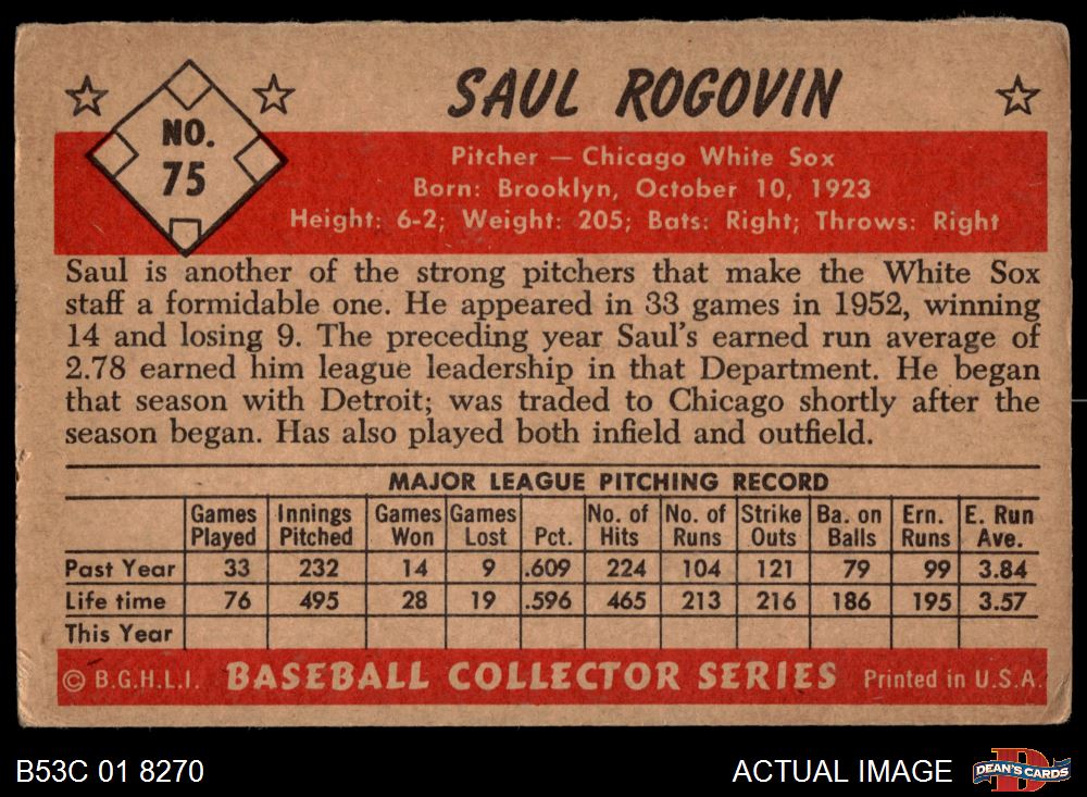 1953 Bowman #75 Saul Rogovin