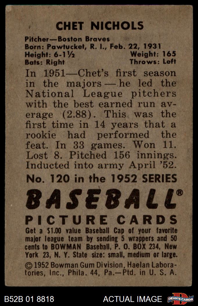 1952 Bowman #120 Chet Nichols 4 - VG/EX