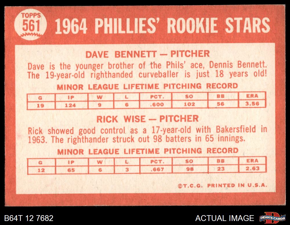 1964 Topps #561 - Rick Wise / Dave Bennett Phillies Rookies 4 - VG/EX