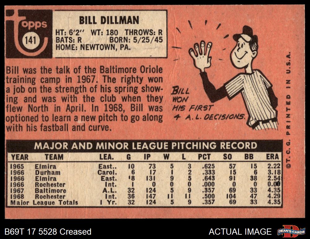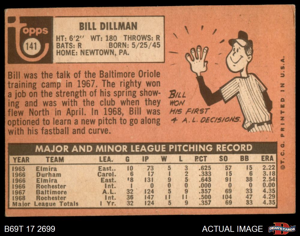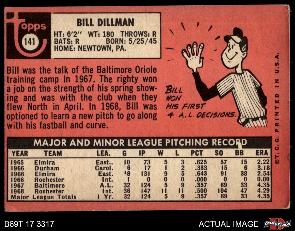 1969 Topps #141 Bill Dillman 3 - VG