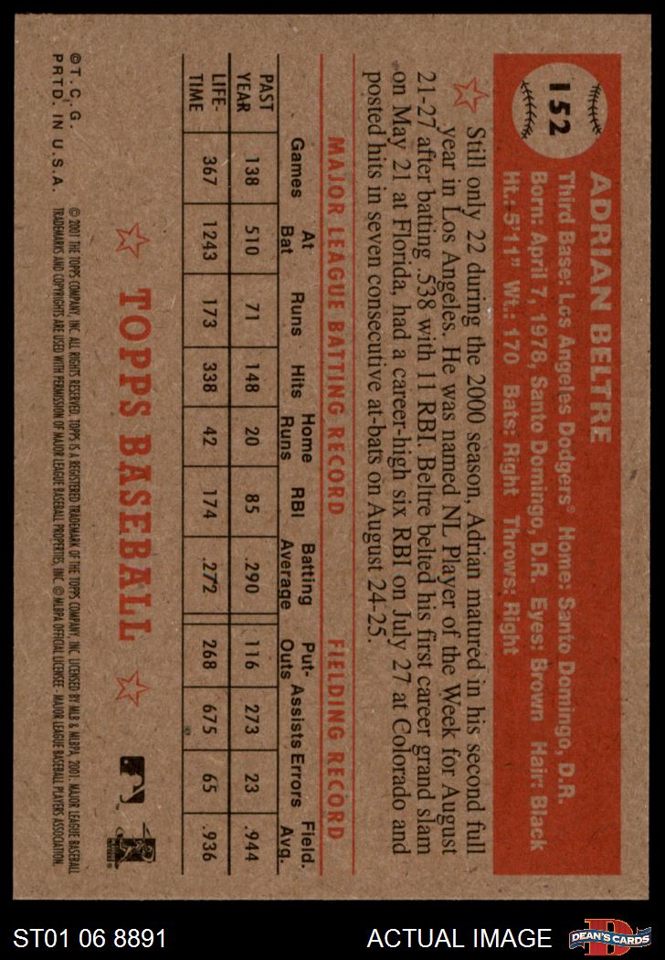 2001 Topps Heritage #152 Adrian Beltre 8 - NM/MT