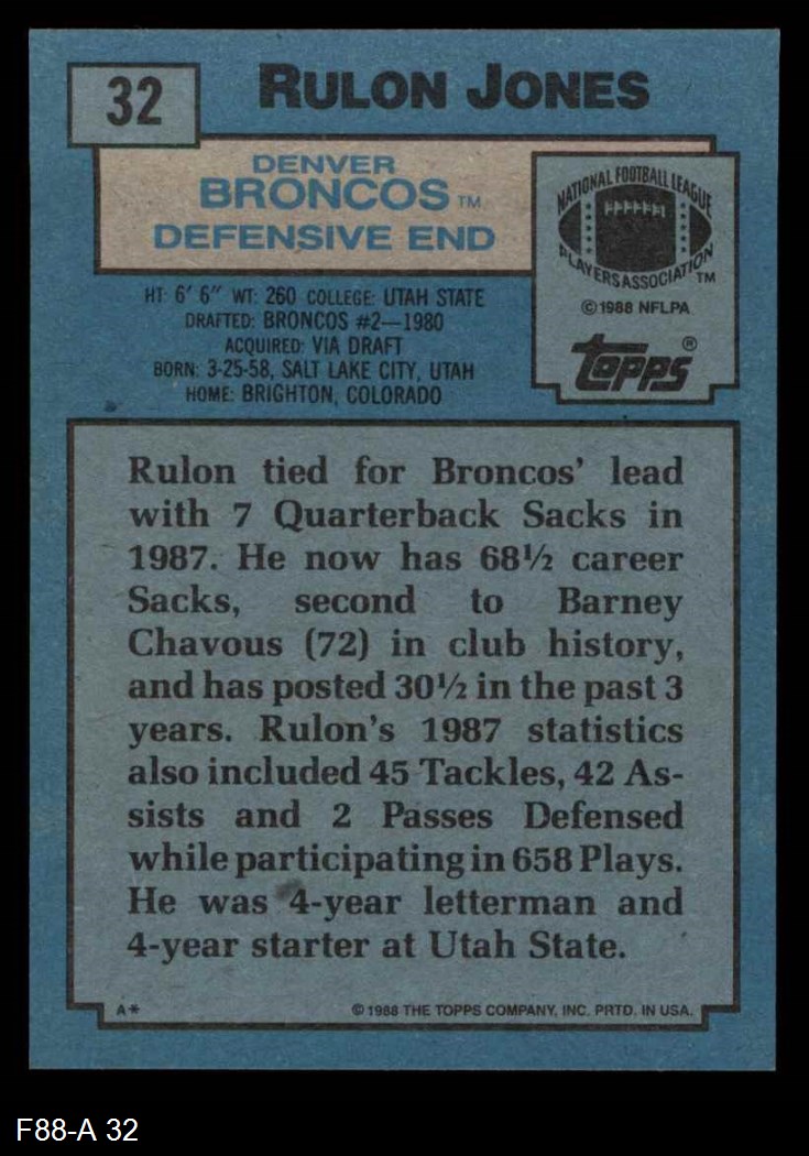 1988 Topps #32 Rulon Jones