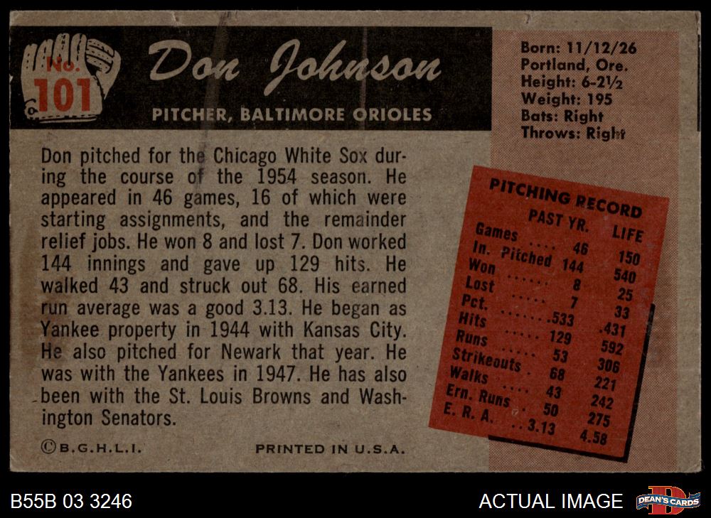 1955 Bowman #101 BRV Don Johnson 2 - GOOD